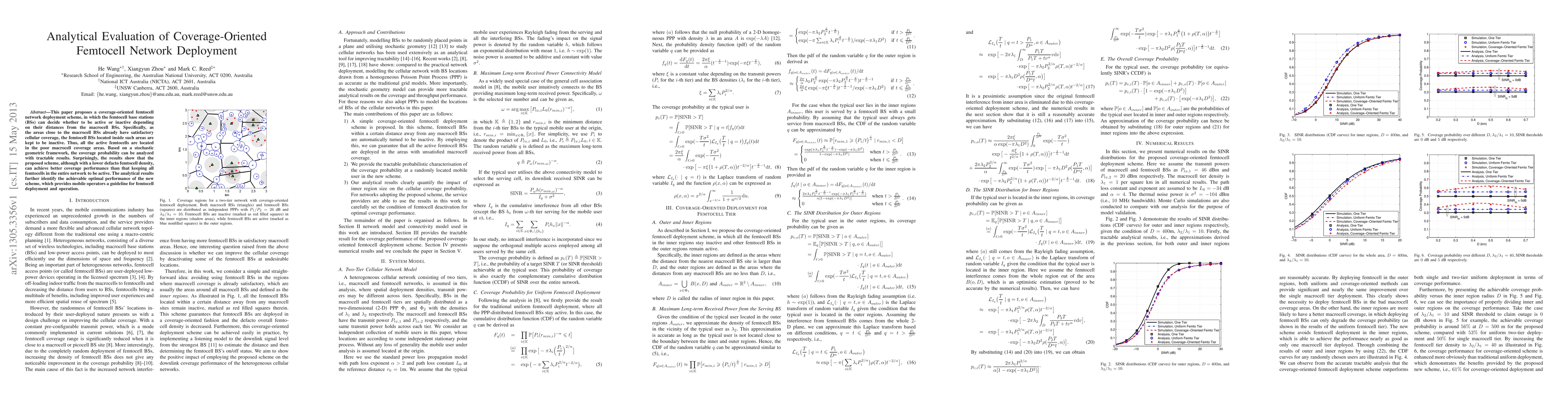 This paper introduces a coverage-oriented femtocell deployment strategy where femtocell base stations are activated or deactivated based on their proximity to macrocell base stations. The analysis reveals that this approach can achieve better coverage performance than keeping all femtocells active, offering valuable guidelines for mobile operators.