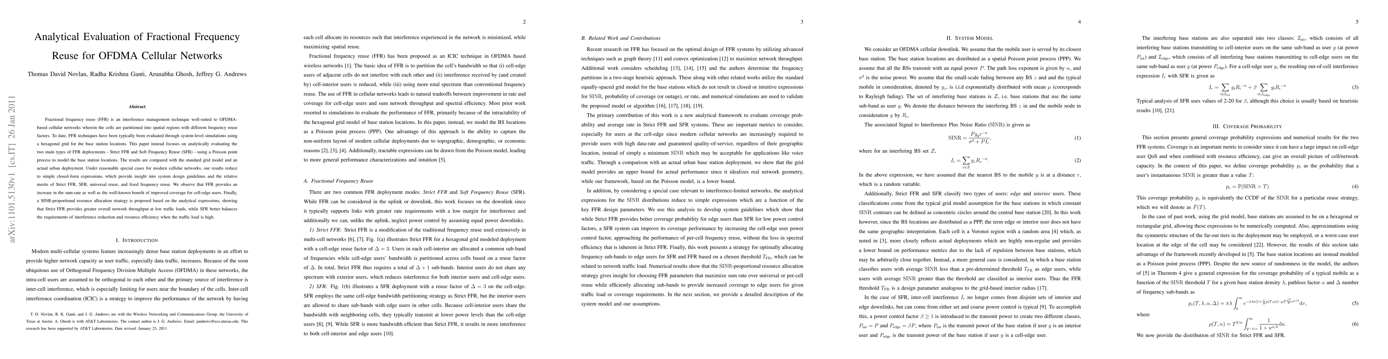 This paper analytically evaluates two types of fractional frequency reuse (FFR) deployments in OFDMA networks using a Poisson point process model, contrasting with traditional grid models. It finds that FFR enhances sum-rate and coverage, with Strict FFR offering higher throughput at low loads and Soft Frequency Reuse balancing interference and resource efficiency at high loads.