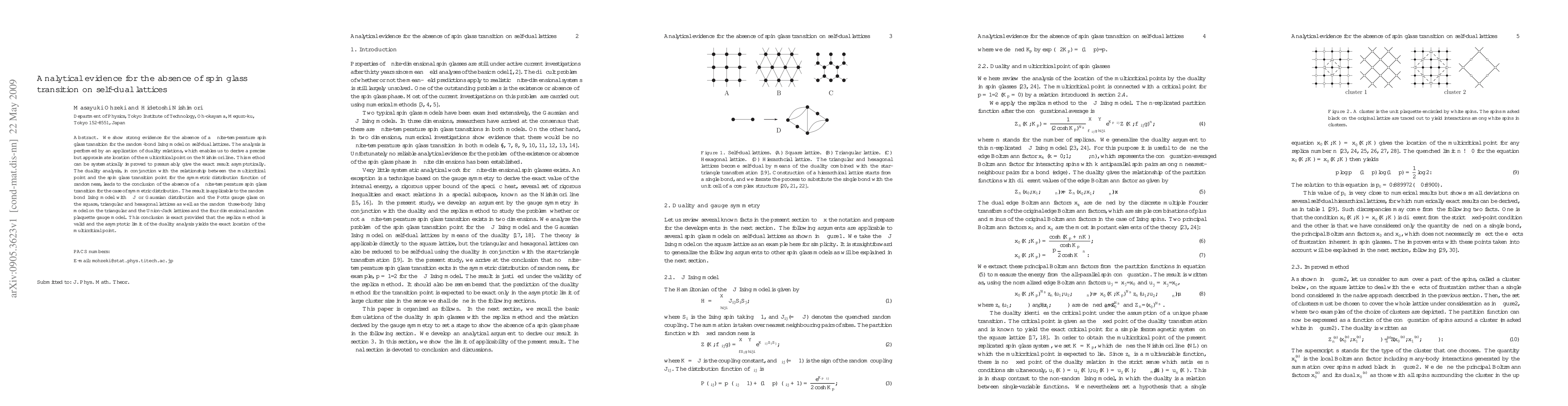 We show strong evidence for the absence of a finite-temperature spin glass transition for the random-bond Ising model on self-dual lattices. The analysis is performed by an application of duality relations, which enables us to derive a precise but approximate location of the multicritical point on the Nishimori line. This method can be systematically improved to presumably give the exact result asymptotically. The duality analysis, in conjunction with the relationship between the multicritical point and the spin glass transition point for the symmetric distribution function of randomness, leads to the conclusion of the absence of a finite-temperature spin glass transition for the case of symmetric distribution. The result is applicable to the random bond Ising model with $\pm J$ or Gaussian distribution and the Potts gauge glass on the square, triangular and hexagonal lattices as well as the random three-body Ising model on the triangular and the Union-Jack lattices and the four dimensional random plaquette gauge model. This conclusion is exact provided that the replica method is valid and the asymptotic limit of the duality analysis yields the exact location of the multicritical point