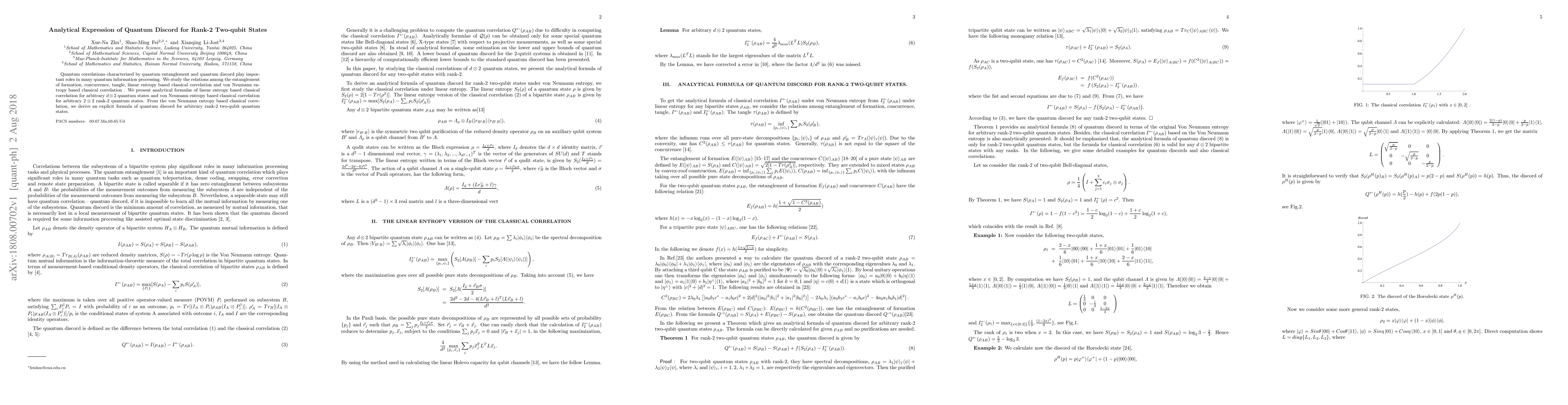 This paper presents analytical expressions for quantum discord in rank-2 two-qubit states, deriving explicit formulas from von Neumann entropy based classical correlation. It also provides analytical formulae for linear entropy based classical correlation for $d\otimes 2$ quantum states.