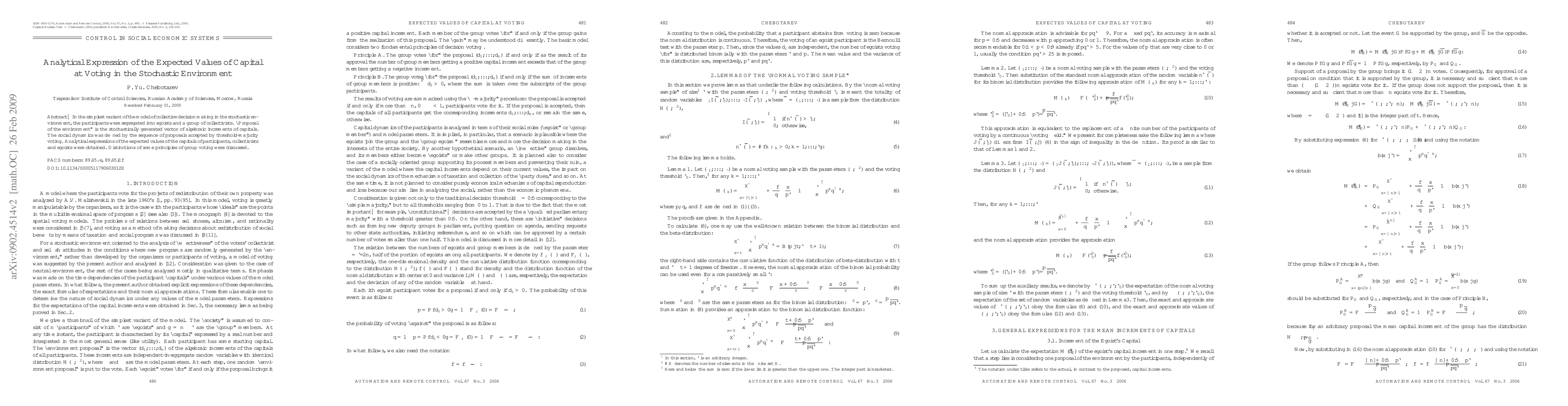 In the simplest version of the model of group decision making in the stochastic environment, the participants are segregated into egoists and a group of collectivists. A "proposal of the environment" is a stochastically generated vector of algebraic increments of participants' capitals. The social dynamics is determined by the sequence of proposals accepted by a majority voting (with a threshold) of the participants. In this paper, we obtain analytical expressions for the expected values of capitals for all the participants, including collectivists and egoists. In addition, distinctions between some principles of group voting are discussed.