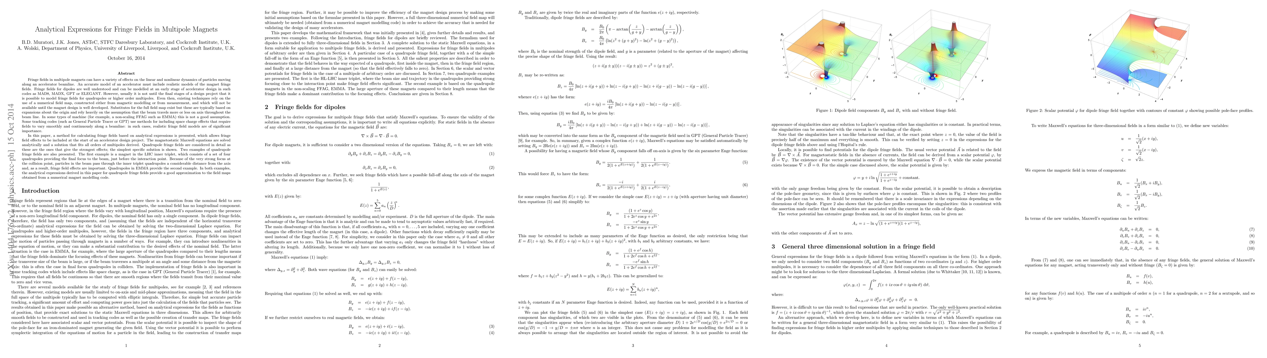 Fringe fields in multipole magnets can have a variety of effects on the linear and nonlinear dynamics of particles moving along an accelerator beamline. An accurate model of an accelerator must include realistic models of the magnet fringe fields. Fringe fields for dipoles are well understood and can be modelled at an early stage of accelerator design in such codes as MAD8, MADX or ELEGANT. However, usually it is not until the final stages of a design project that it is possible to model fringe fields for quadrupoles or higher order multipoles. Even then, existing techniques rely on the use of a numerical field map, which will usually not be available until the magnet design is well developed. Substitutes for the full field map exist but these are typically based on expansions about the origin and rely heavily on the assumption that the beam travels more or less on axis throughout the beam line. In some types of machine (for example, a non-scaling FFAG such as EMMA) this is not a good assumption. In this paper, a method for calculating fringe fields based on analytical expressions is presented, which allows fringe field effects to be included at the start of an accelerator design project. The magnetostatic Maxwell equations are solved analytically and a solution that fits all orders of multipoles derived. Quadrupole fringe fields are considered in detail as these are the ones that give the strongest effects. Two examples of quadrupole fringe fields are presented. The first example is a magnet in the LHC inner triplet, which consists of a set of four quadrupoles providing the final focus to the beam, just before the interaction point. Quadrupoles in EMMA provide the second example. In both examples, the analytical expressions derived in this paper for quadrupole fringe fields provide a good approximation to the field maps obtained from a numerical magnet modelling code.