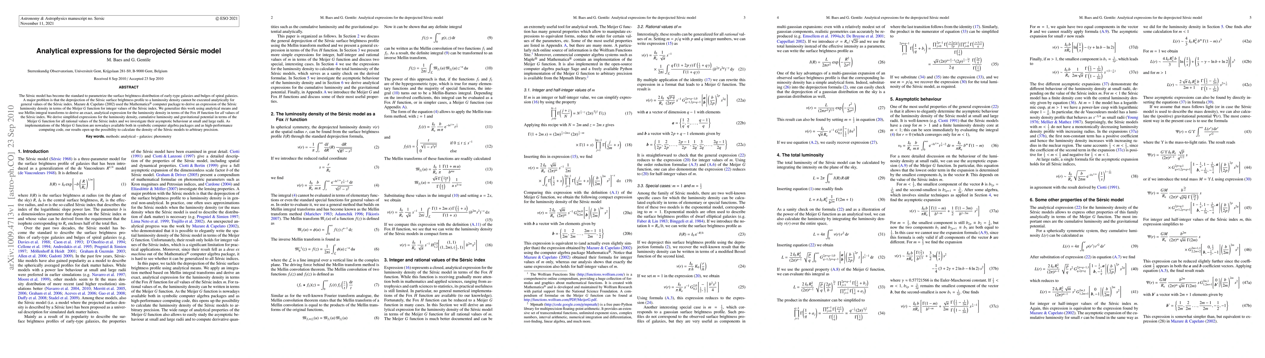 This research provides analytical expressions for the Sérsic model, which is crucial for understanding the structure and dynamics of early-type galaxies and bulges of spiral galaxies. The expressions allow for precise calculations, enriching theoretical studies and practical applications in astrophysics.