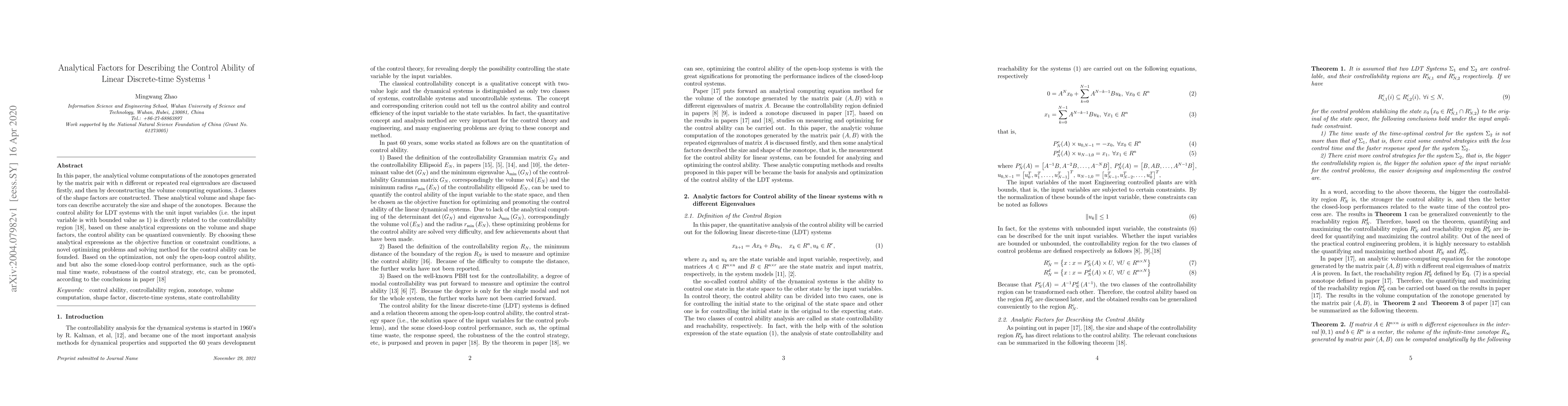 Researchers developed an analytical framework to describe the control ability of linear discrete-time systems, enabling accurate quantization and optimization of control strategies.