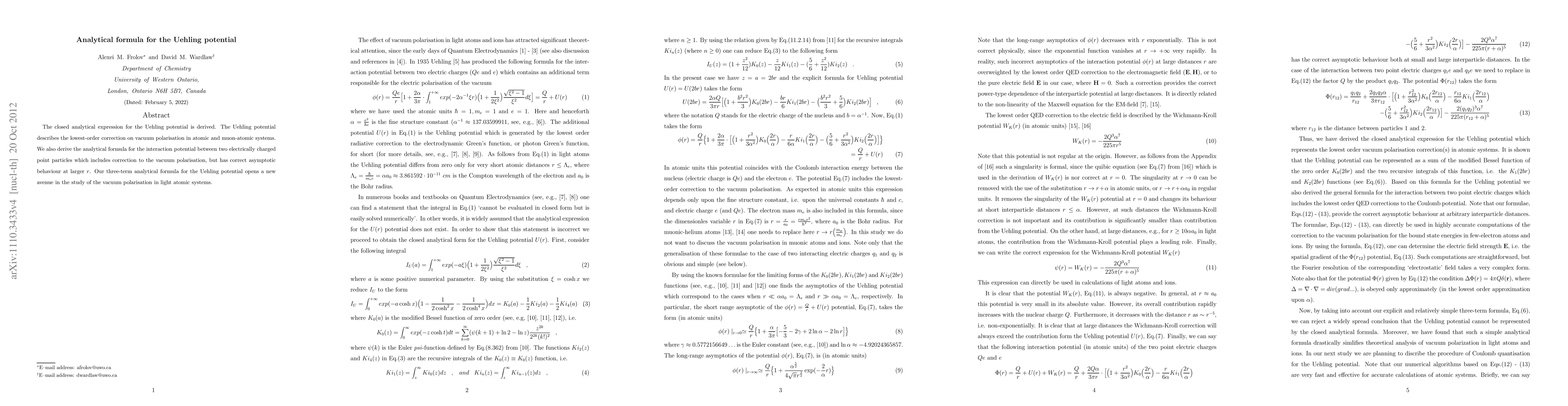 The paper derives a closed analytical expression for the Uehling potential, providing the lowest-order correction for vacuum polarisation in atomic and muon-atomic systems, and introduces a three-term formula that corrects for vacuum polarisation with improved asymptotic behavior.