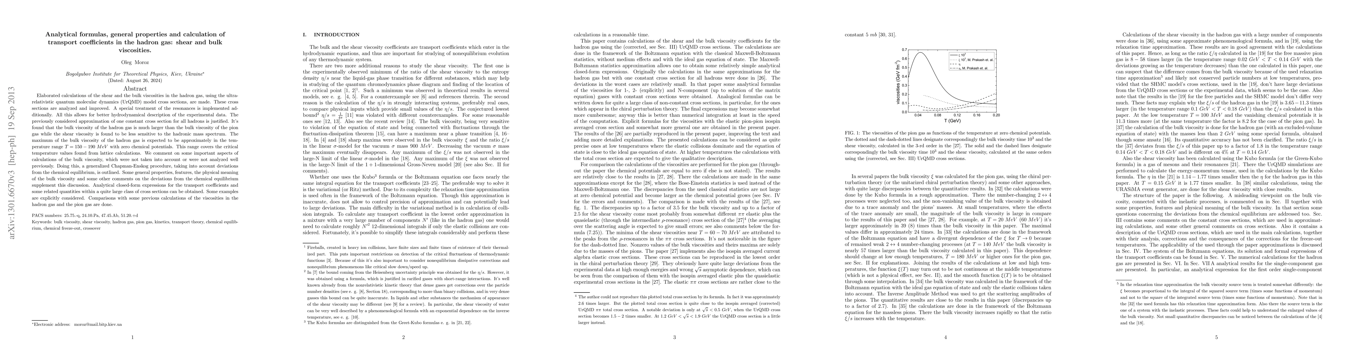 This paper presents improved calculations of shear and bulk viscosities in the hadron gas using the UrQMD model, showing that the bulk viscosity is significantly larger than in pion gas and highlighting the importance of resonance treatment. Analytical expressions for transport coefficients are derived, revealing a maximum bulk viscosity around the critical temperature range of 150-190 MeV.
