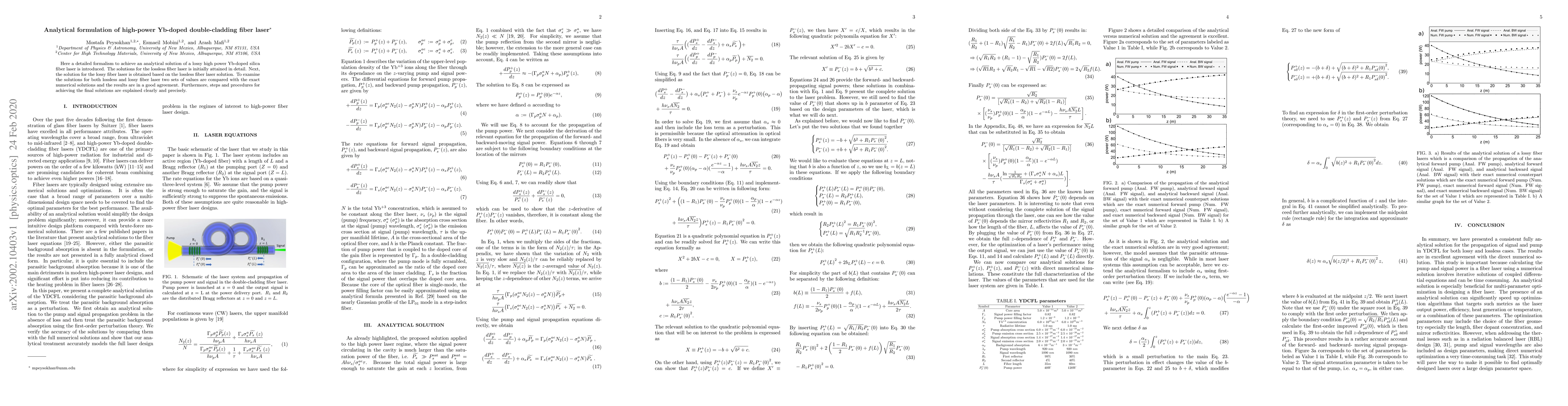 This paper presents an analytical method to derive solutions for both lossless and lossy high-power Yb-doped silica fiber lasers, comparing results with exact numerical solutions to validate accuracy. The procedures for obtaining these solutions are clearly outlined.