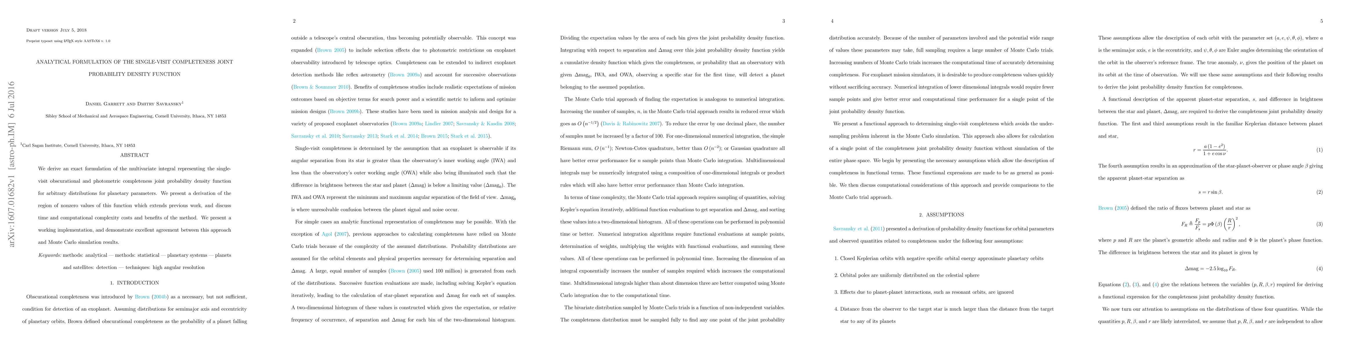 This paper derives an exact formulation for the joint probability density function of planetary parameter completeness, extending previous work and discussing computational efficiency. The method shows excellent agreement with Monte Carlo simulations.