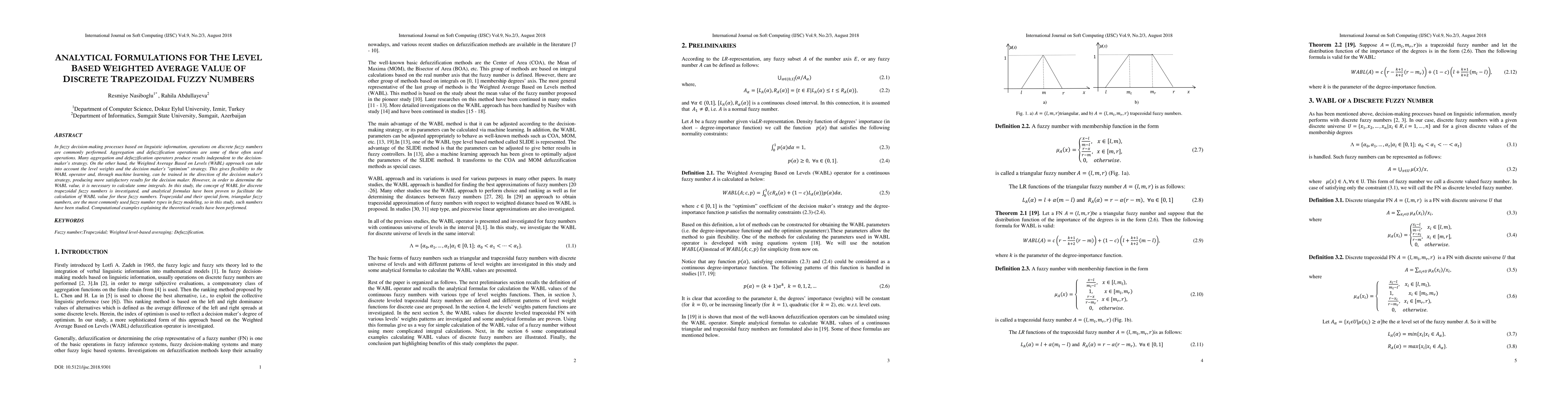 This paper develops analytical formulations for calculating the Weighted Average Based on Levels (WABL) value of discrete trapezoidal fuzzy numbers, enhancing flexibility and decision-maker satisfaction in fuzzy decision-making processes. The study provides integral calculation methods to facilitate the WABL approach, which is particularly useful for common trapezoidal and triangular fuzzy numbers in fuzzy modeling.