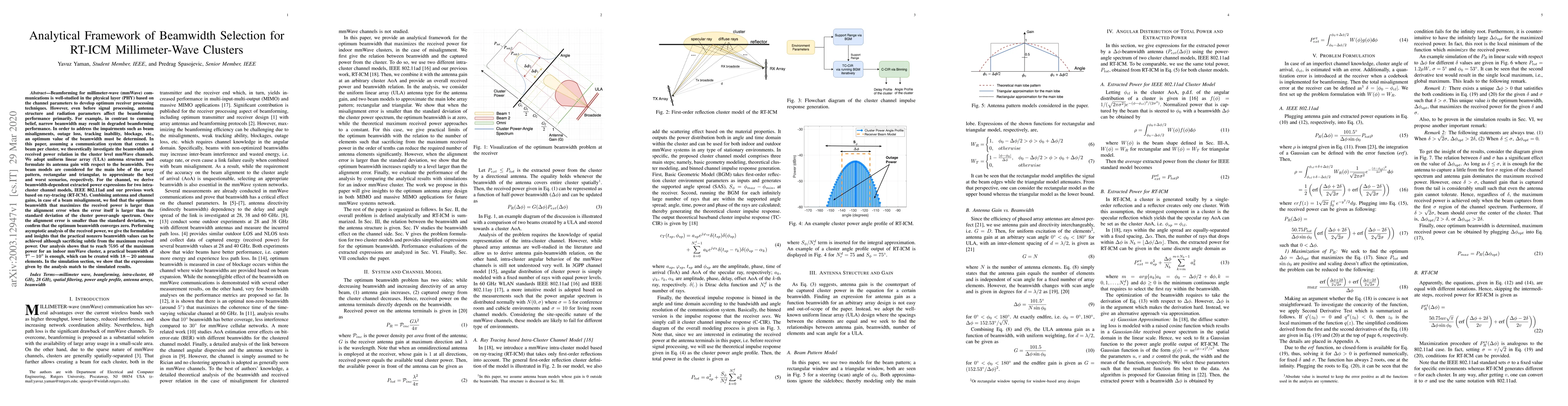 This paper investigates the optimal beamwidth (bmW) selection for RT-ICM millimeter-wave cluster communications, demonstrating that narrow bmW can degrade performance. The study finds that a practical bmW of 7-10 degrees, achievable with 18-20 antenna elements, can provide 95% of maximum received power, balancing performance and practicality.