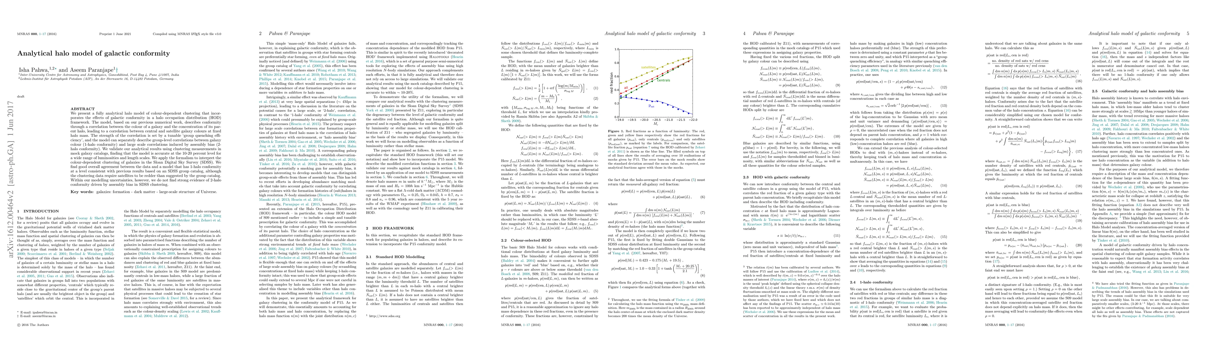 This paper introduces an analytical halo model that captures the effects of galactic conformity, linking galaxy colour to the concentration of its parent halo. The model accurately describes both 1-halo and 2-halo conformity correlations and is validated against mock galaxy catalogs, showing good agreement with SDSS data on colour-dependent clustering.