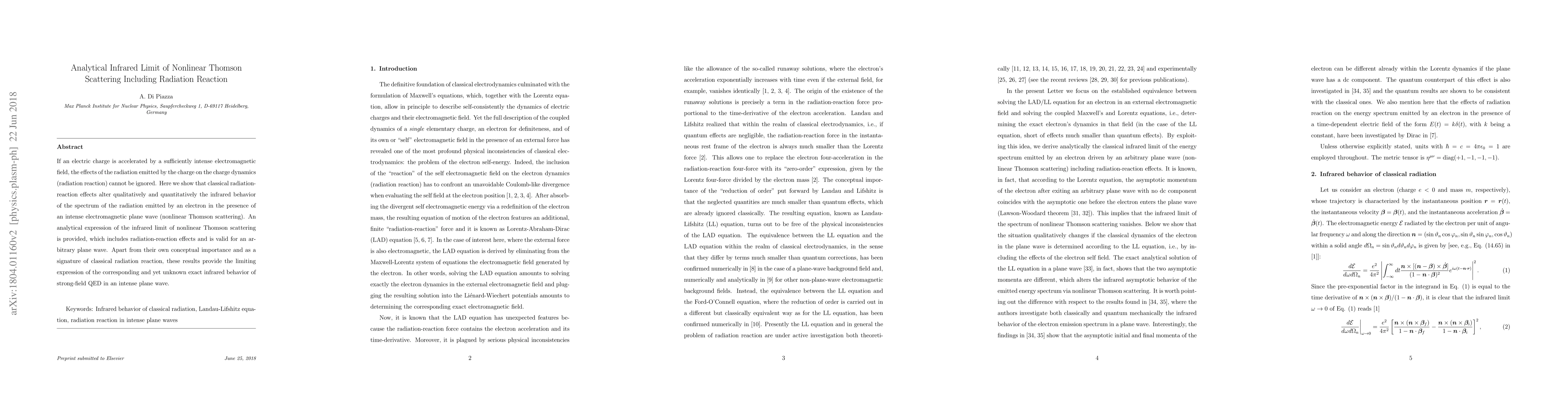 This paper presents an analytical expression for the infrared limit of nonlinear Thomson scattering, including radiation-reaction effects, showing that these effects significantly alter both the qualitative and quantitative characteristics of the emitted radiation spectrum. The results provide a foundational understanding of classical radiation reaction and hint at the behavior of strong-field quantum electrodynamics.