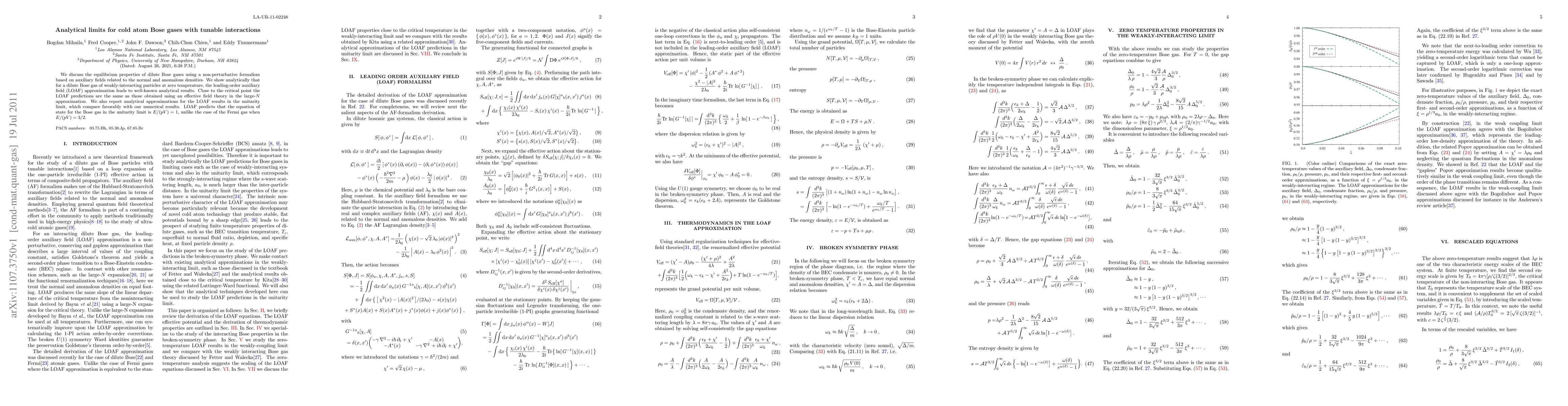 We discuss the equilibrium properties of dilute Bose gases using a non-perturbative formalism based on auxiliary fields related to the normal and anomalous densities. We show analytically that for a dilute Bose gas of weakly-interacting particles at zero temperature, the leading-order auxiliary field (LOAF) approximation leads to well-known analytical results. Close to the critical point the LOAF predictions are the same as those obtained using an effective field theory in the large-N approximation. We also report analytical approximations for the LOAF results in the unitarity limit, which compare favorably with our numerical results. LOAF predicts that the equation of state for the Bose gas in the unitarity limit is E / (p V) = 1, unlike the case of the Fermi gas when E / (p V) = 3/2.