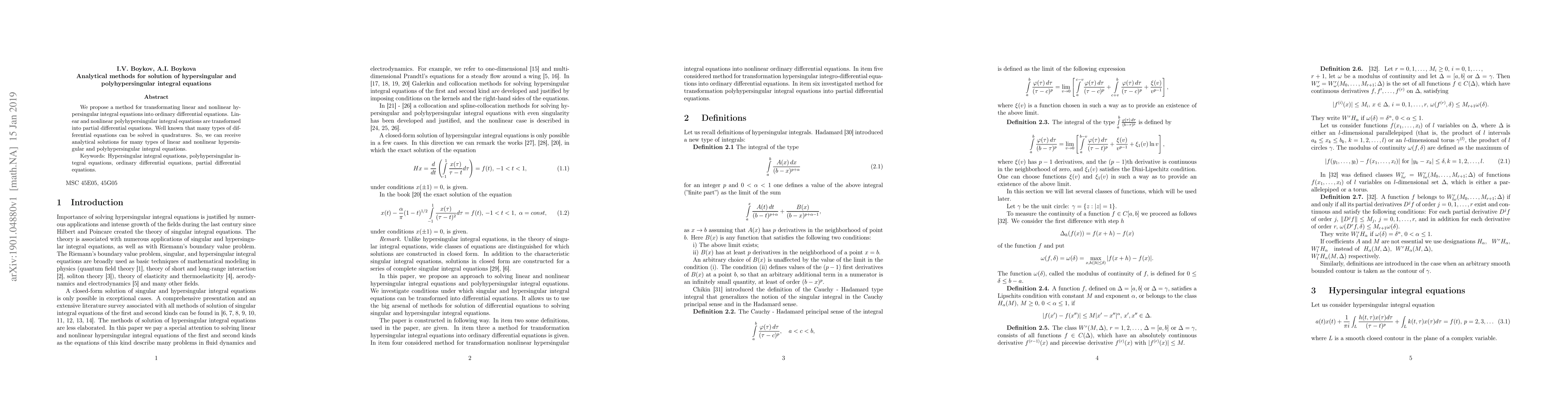 This paper presents a method to transform linear and nonlinear hypersingular integral equations into ordinary differential equations and polyhypersingular integral equations into partial differential equations, enabling the derivation of analytical solutions for these types of equations.