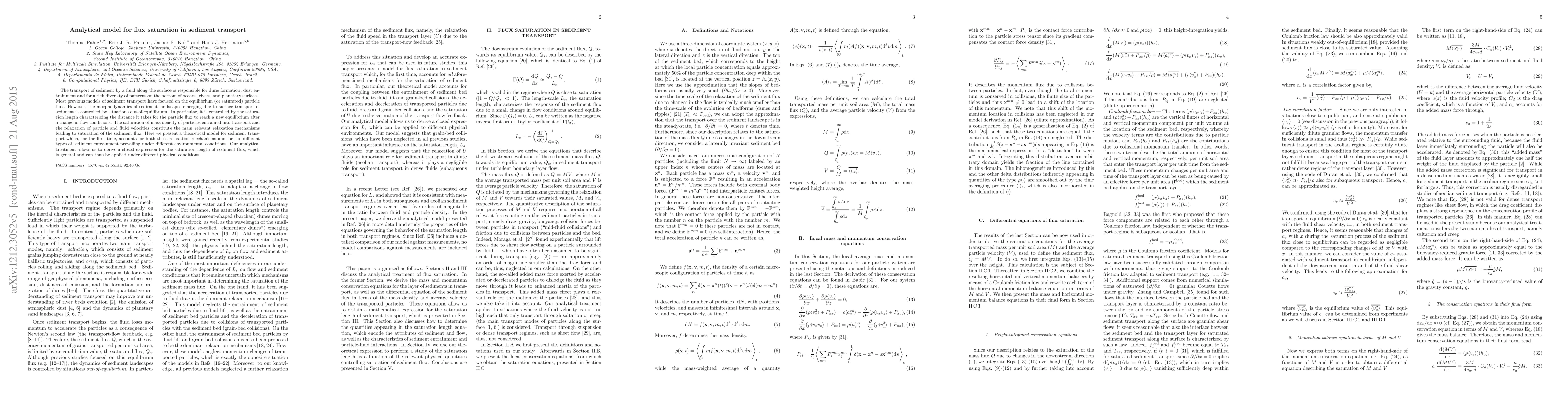 This paper introduces a new analytical model that captures the non-equilibrium dynamics of sediment transport, focusing on the saturation length required for particle flux to reach equilibrium after changes in flow conditions. The model considers relaxation mechanisms for sediment density and velocities, offering a general expression applicable across various environmental settings.