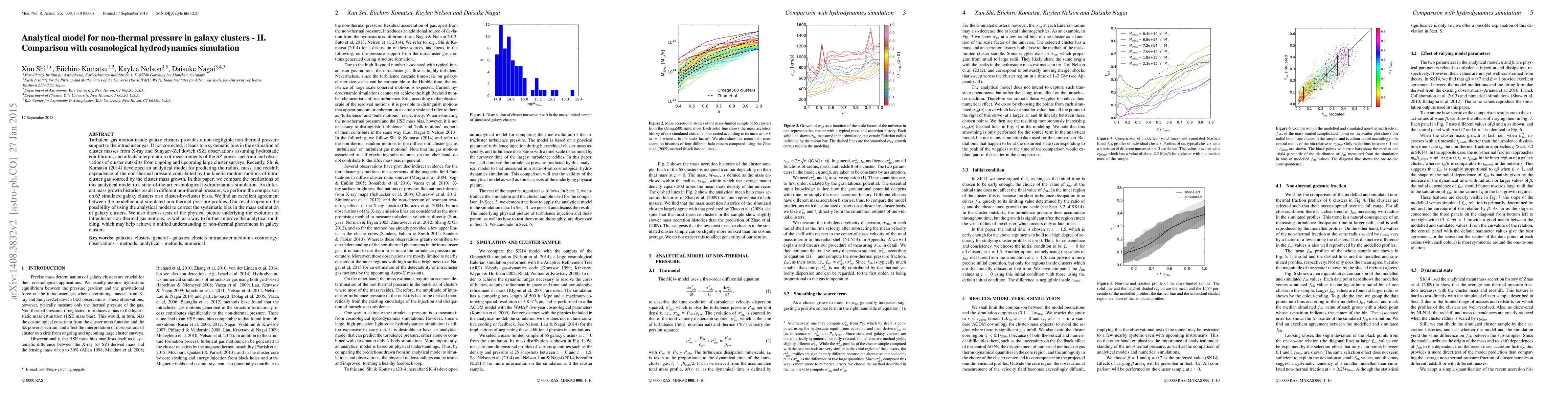 This paper compares an analytical model predicting non-thermal pressure in galaxy clusters to a cosmological hydrodynamics simulation, finding excellent agreement. The model can correct systematic biases in cluster mass estimations from X-ray and SZ observations, enhancing the interpretation of large cluster surveys.