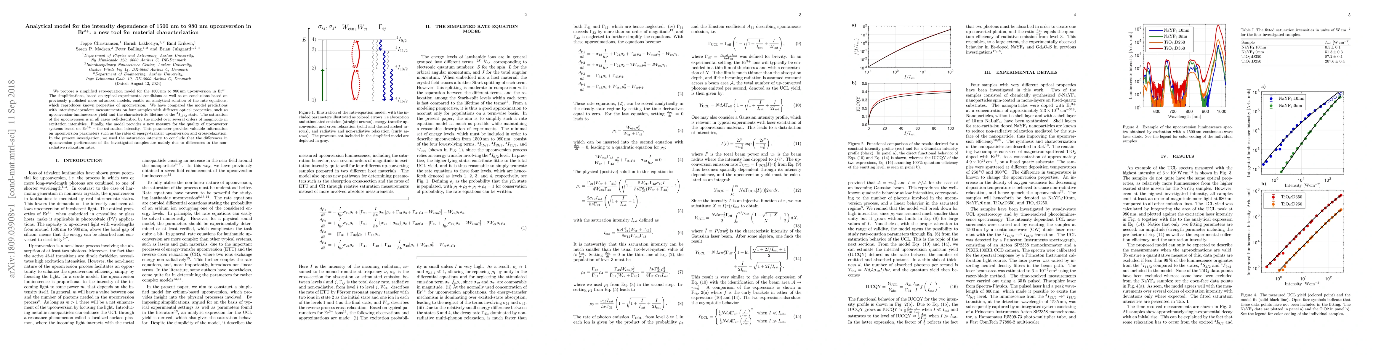 We propose a simplified rate-equation model for the 1500 nm to 980 nm upconversion in Er$^{3+}$. The simplifications, based on typical experimental conditions as well as on conclusions based on previously published more advanced models, enable an analytical solution of the rate equations, which reproduces known properties of upconversion. We have compared the model predictions with intensity-dependent measurements on four samples with different optical properties, such as upconversion-luminescence yield and the characteristic lifetime of the $^4I_{13/2}$ state. The saturation of the upconversion is in all cases well-described by the model over several orders of magnitude in excitation intensities. Finally, the model provides a new measure for the quality of upconverter systems based on Er$^{3+}$ -- the saturation intensity. This parameter provides valuable information on upconversion parameters such as the rates of energy-transfer upconversion and cross-relaxation. In the present investigation, we used the saturation intensity to conclude that the differences in upconversion performance of the investigated samples are mainly due to differences in the non-radiative relaxation rates.
