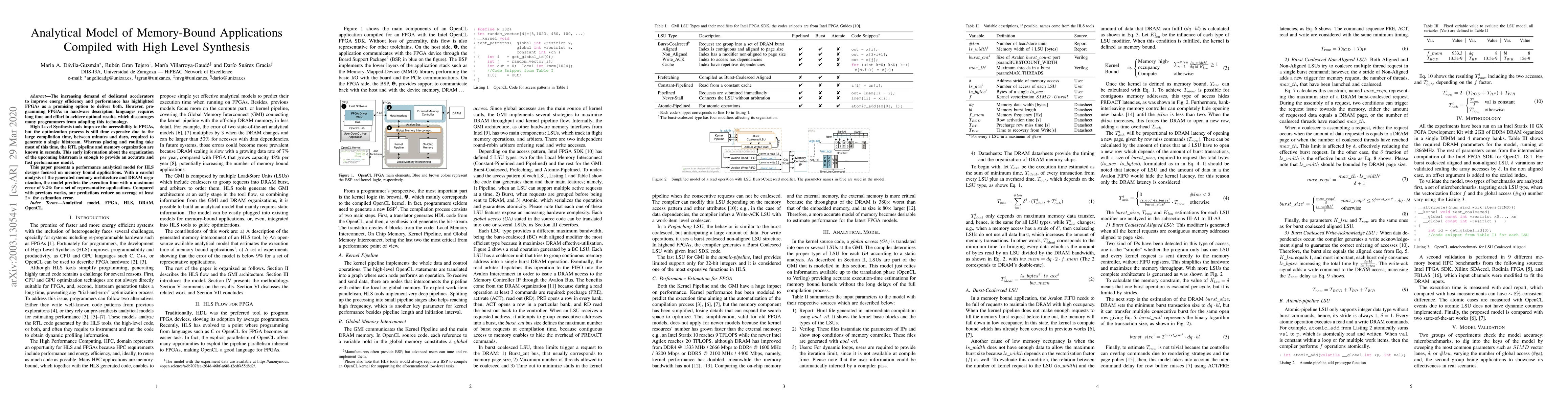 This paper introduces an analytical model for predicting the performance of memory-bound applications compiled with High Level Synthesis (HLS) tools for FPGAs. The model provides accurate execution time predictions with a maximum error of 9.2%, significantly reducing estimation errors compared to previous methods.
