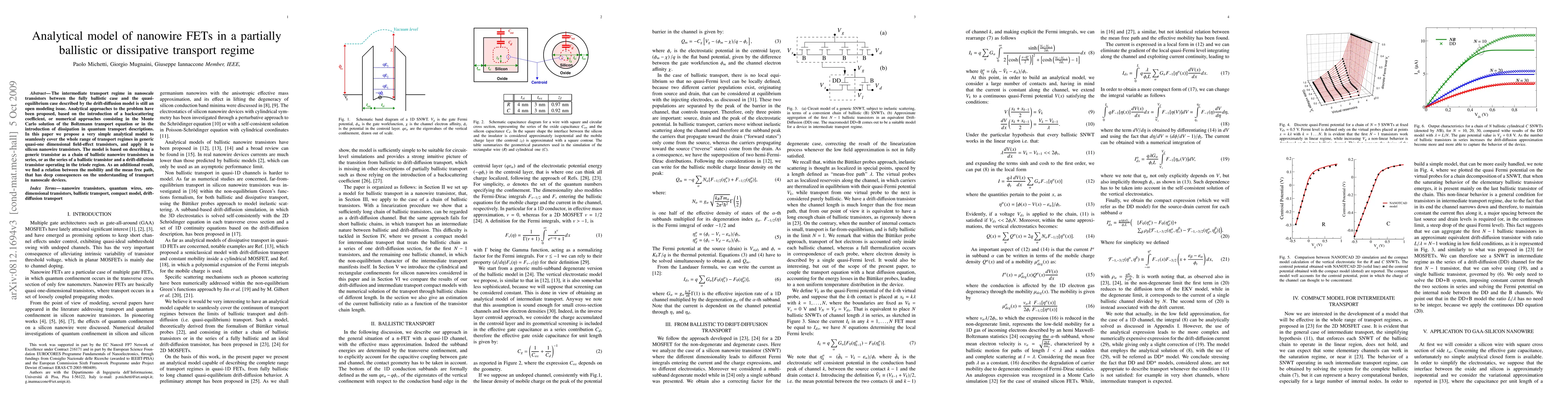 The intermediate transport regime in nanoscale transistors between the fully ballistic case and the quasi equilibrium case described by the drift-diffusion model is still an open modeling issue. Analytical approaches to the problem have been proposed, based on the introduction of a backscattering coefficient, or numerical approaches consisting in the MonteCarlo solution of the Boltzmann transport equation or in the introduction of dissipation in quantum transport descriptions. In this paper we propose a very simple analytical model to seamlessly cover the whole range of transport regimes in generic quasi-one dimensional field-effect transistors, and apply it to silicon nanowire transistors. The model is based on describing a generic transistor as a chain of ballistic nanowire transistors in series, or as the series of a ballistic transistor and a drift-diffusion transistor operating in the triode region. As an additional result, we find a relation between the mobility and the mean free path, that has deep consequences on the understanding of transport in nanoscale devices.