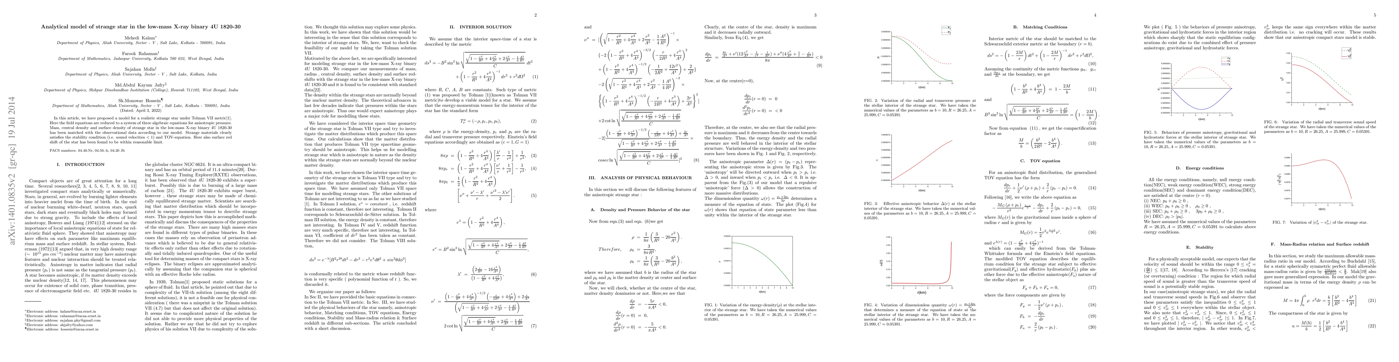 Researchers propose a model for a strange star in 4U 1820-30 binary system, satisfying stability conditions and matching observational data on mass, density, and surface red shift.