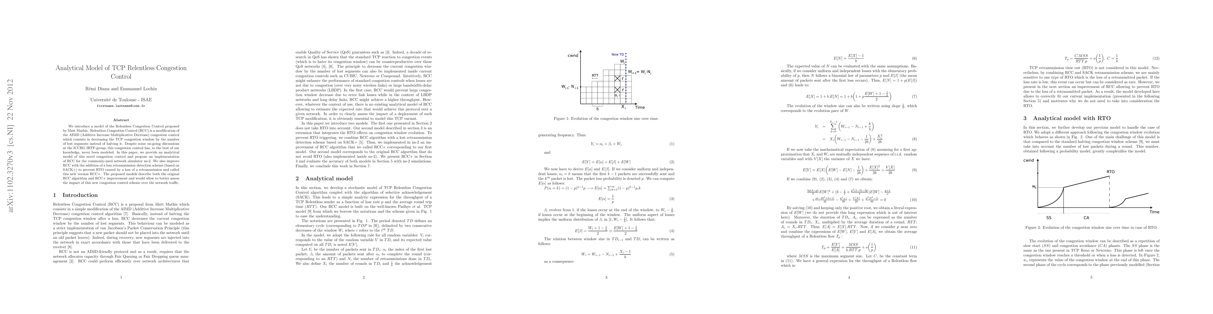 This paper presents an analytical model for the Relentless Congestion Control (RCC) and its improved version RCC+. It introduces RCC, a TCP congestion control modification that decreases the congestion window by lost segments instead of halving it, and provides a model for its implementation in ns-2. The paper also enhances RCC with a loss retransmission detection scheme to prevent retransmission timeouts.