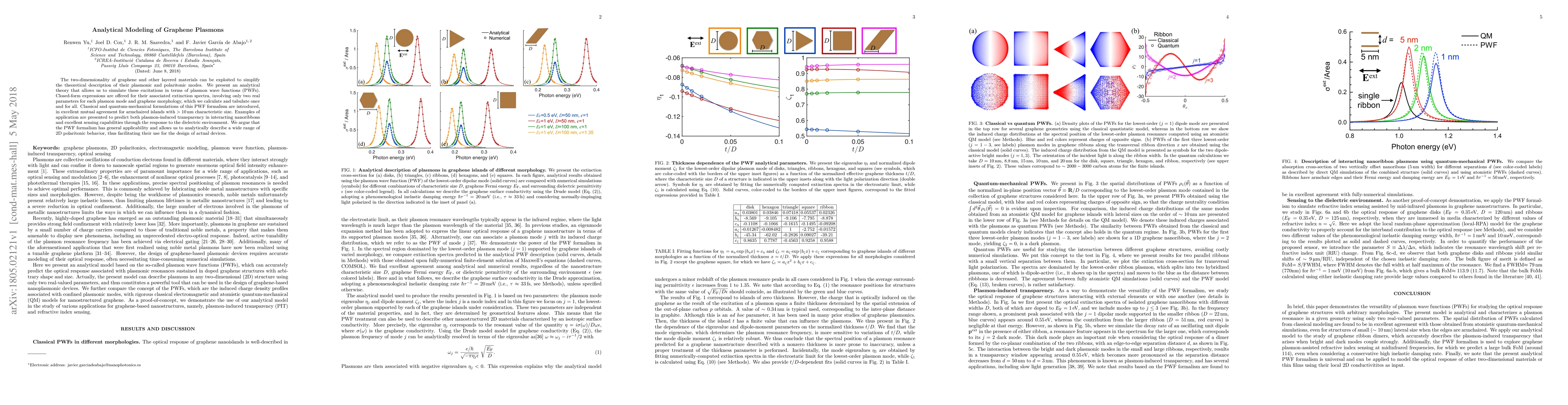 The two-dimensionality of graphene and other layered materials can be exploited to simplify the theoretical description of their plasmonic and polaritonic modes. We present an analytical theory that allows us to simulate these excitations in terms of plasmon wave functions (PWFs). Closed-form expressions are offered for their associated extinction spectra, involving only two real parameters for each plasmon mode and graphene morphology, which we calculate and tabulate once and for all. Classical and quantum-mechanical formulations of this PWF formalism are introduced, in excellent mutual agreement for armchaired islands with $>10\,$nm characteristic size. Examples of application are presented to predict both plasmon-induced transparency in interacting nanoribbons and excellent sensing capabilities through the response to the dielectric environment. We argue that the PWF formalism has general applicability and allows us to analytically describe a wide range of 2D polaritonic behavior, thus facilitating their use for the design of actual devices.