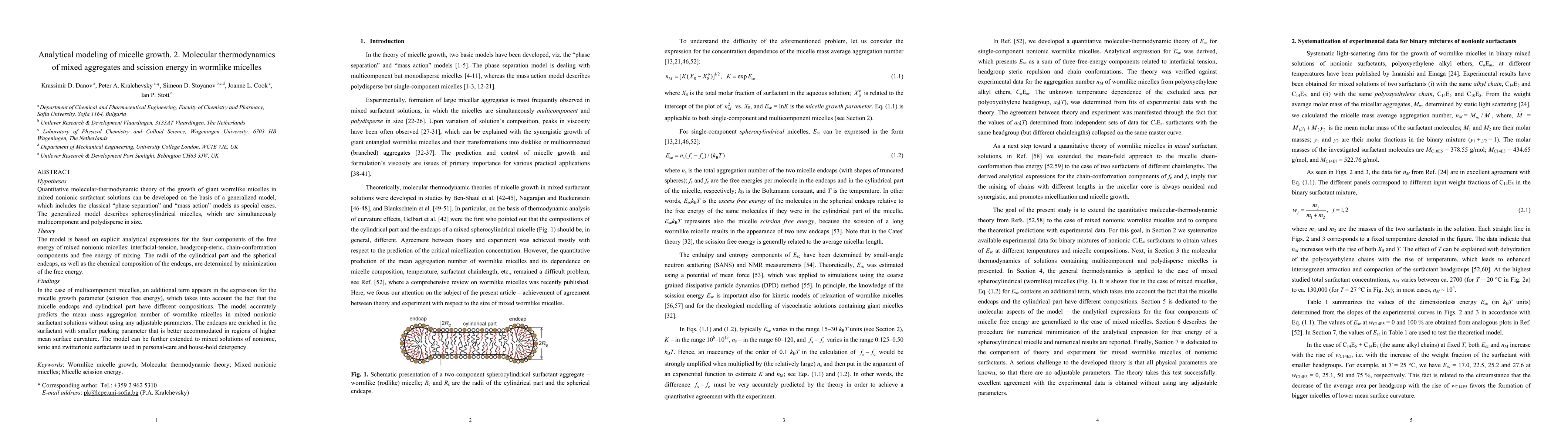 This paper develops a quantitative molecular-thermodynamic theory for the growth of giant wormlike micelles in mixed nonionic surfactant solutions, using a generalized model that includes classical phase separation and mass action models. The model accurately predicts the mean mass aggregation number without adjustable parameters and identifies the compositional differences between micelle endcaps and cylindrical parts.