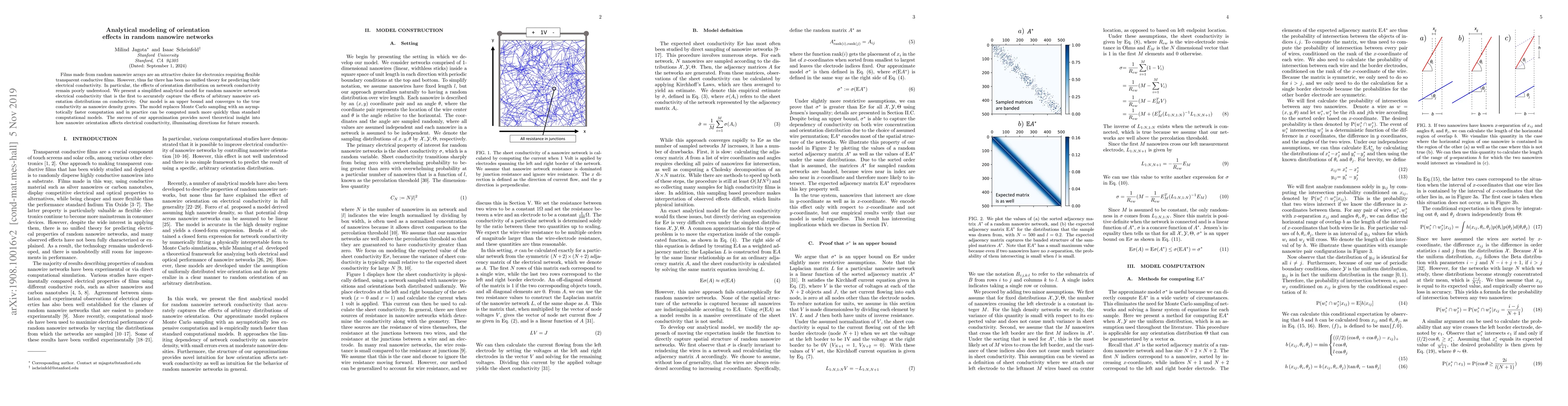 This paper introduces an analytical model to predict the electrical conductivity of random nanowire networks, addressing the lack of a unified theory. The model accurately captures the impact of nanowire orientation distributions and converges to true conductivity as nanowire density increases, offering faster computational benefits compared to Monte Carlo methods.