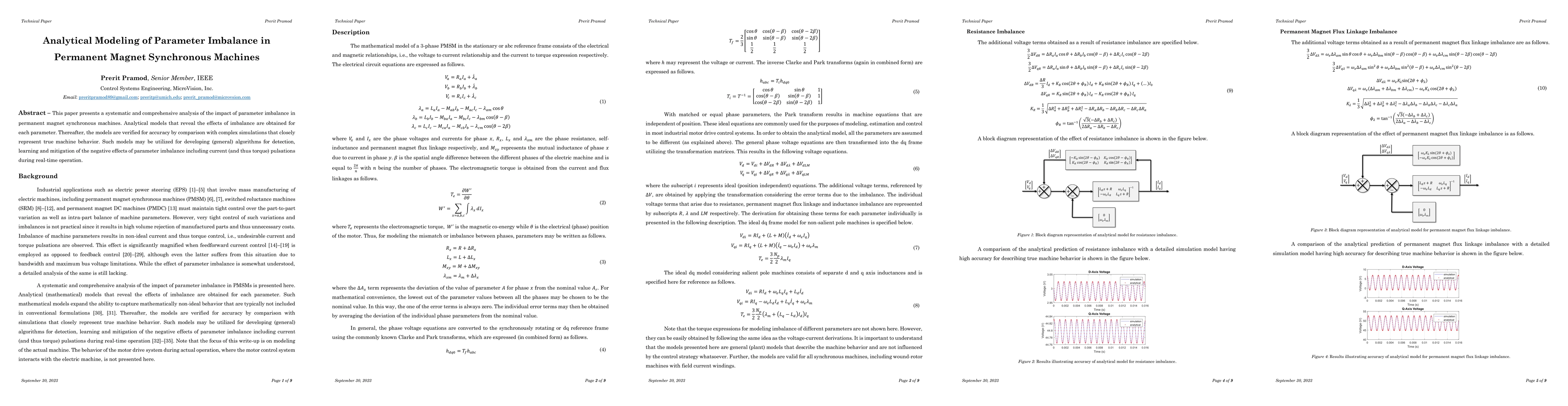 This paper develops analytical models to analyze the impact of parameter imbalance in permanent magnet synchronous machines, and verifies these models against detailed simulations. The models aim to inform the development of algorithms for detecting and mitigating the negative effects of imbalance, including current and torque pulsations.
