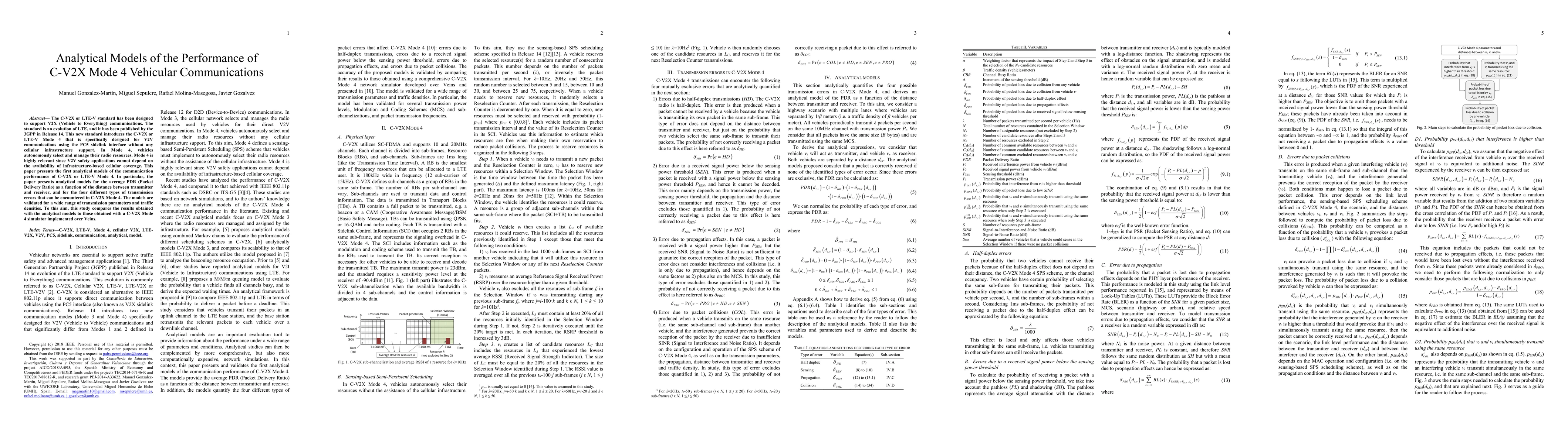 This paper develops analytical models to evaluate the performance of C-V2X Mode 4 vehicular communications, focusing on average Packet Delivery Ratio and transmission errors without cellular infrastructure. Models are validated against a simulator, demonstrating their applicability across various parameters and traffic densities.
