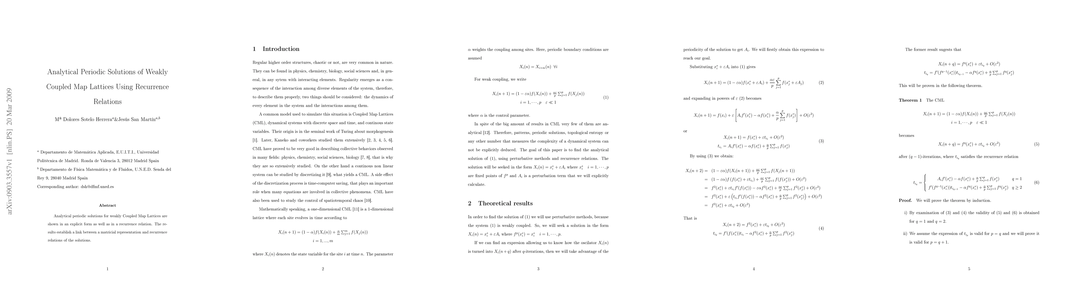 This paper presents analytical periodic solutions for weakly coupled map lattices, providing both explicit forms and recurrence relations. It establishes a connection between the matricial representation and the recurrence relations of these solutions.