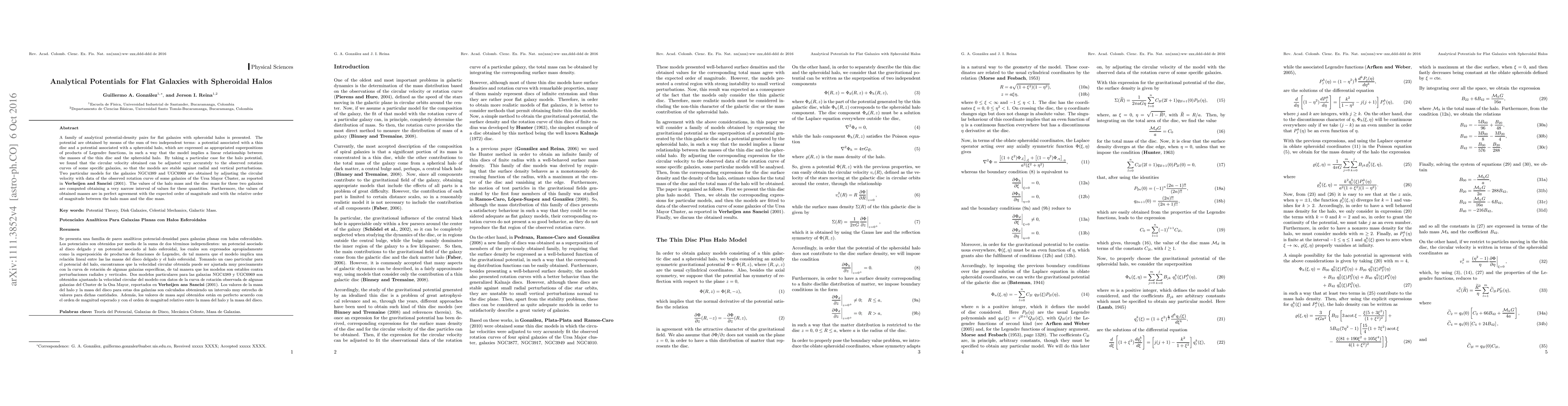 A family of analytical potential-density pairs for flat galaxies with spheroidal halos is presented. The potential are obtained by means of the sum of two independent terms: a potential associated with a thin disc and a potential associated with a spheroidal halo, which are expressed as appropriated superpositions of products of Legendre functions, in such a way that the model implies a linear relationship between the masses of the thin disc and the spheroidal halo. By taking a particular case for the halo potential, we found that the circular velocity obtained can be adjusted very accurately to the observed rotation curves of some specific galaxies, so that the models are stable against radial and vertical perturbations. Two particular models for the galaxies NGC4389 and UGC6969 are obtained by adjusting the circular velocity with data of the observed rotation curve of some galaxies of the Ursa Mayor Cluster, as reported in Verheijen and Sancisi 2001. The values of the halo mass and the disc mass for these two galaxies are computed obtaining a very narrow interval of values for these quantities. Furthermore, the values of obtained masses are in perfect agreement with the expected order of magnitude and with the relative order of magnitude between the halo mass and the disc mass.