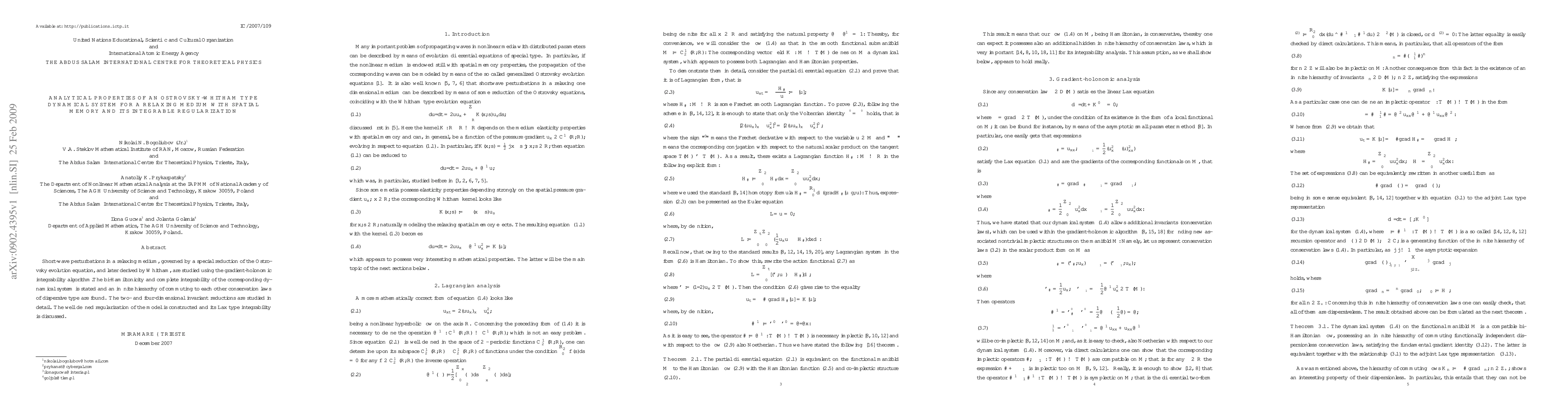 Short-wave perturbations in a relaxing medium, governed by a special reduction of the Ostrovsky evolution equation, and later derived by Whitham, are studied using the gradient-holonomic integrability algorithm.The bi-Hamiltonicity and complete integrability of the corresponding dynamical system is stated and an infinite hierarchy of commuting to each other conservation laws of dispersive type are found. The two- and four-dimensional invariant reductions are studied in detail. The well defined regularization of the model is constructed and its Lax type integrability is discussed.