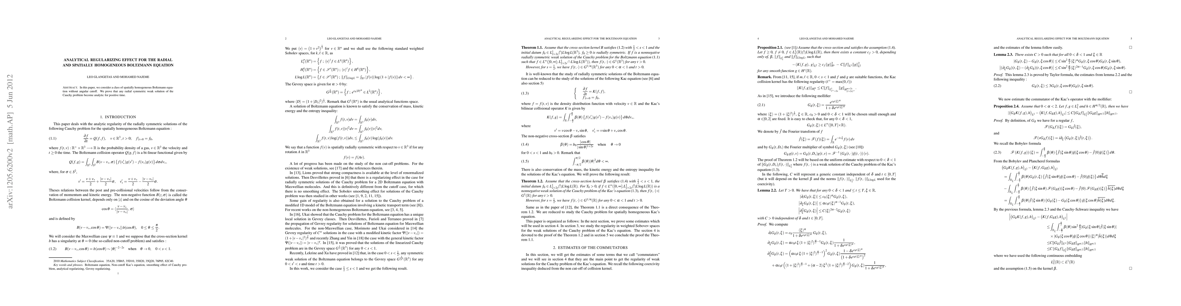 Summary: This paper proves that radial symmetric weak solutions of the spatially homogeneous Boltzmann equation without angular cutoff become analytically regular for positive time, demonstrating an analytical regularizing effect.