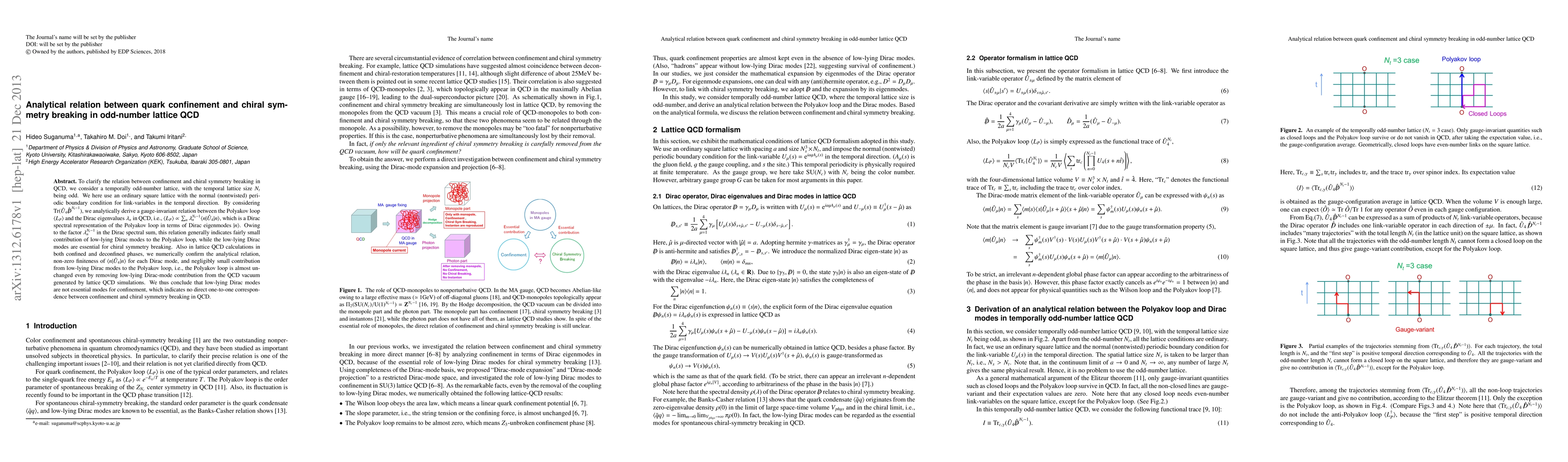 This research establishes an analytical relation between quark confinement and chiral symmetry breaking in odd-number lattice QCD, demonstrating that low-lying Dirac modes contribute minimally to confinement despite their importance for chiral symmetry breaking, thus indicating a complex relationship between these phenomena.