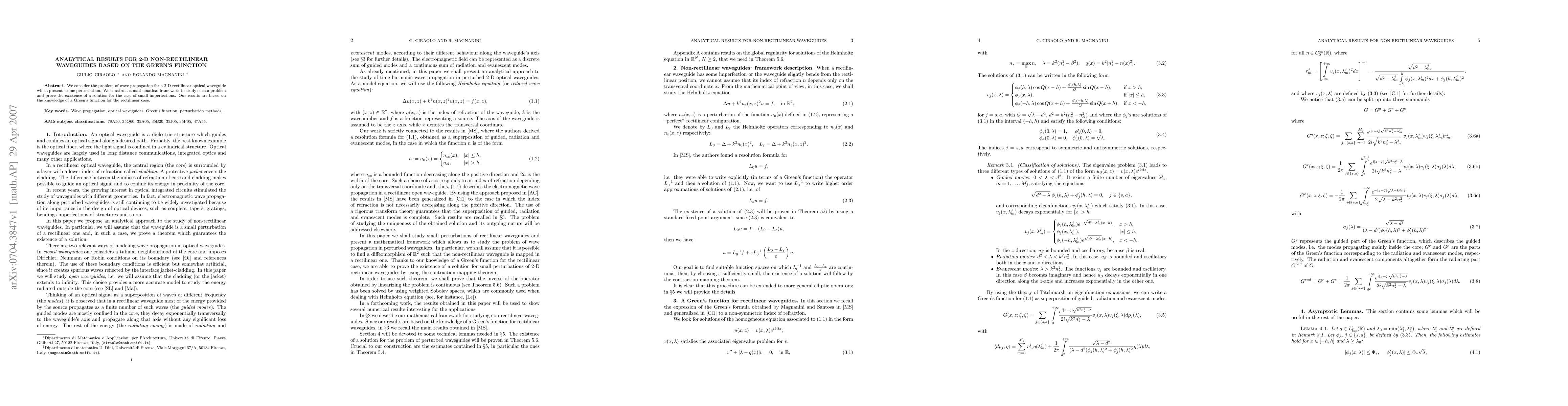 Researchers developed a mathematical framework to study wave propagation in 2-D optical waveguides with small imperfections, using the Green's function for rectilinear cases.