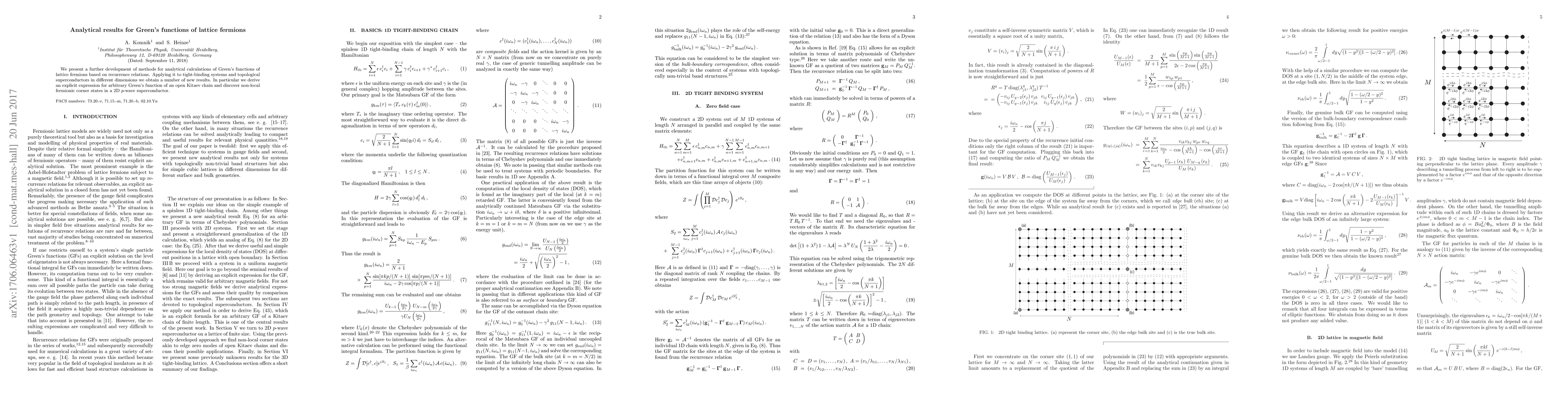 This paper develops advanced analytical methods for calculating Green's functions of lattice fermions using recurrence relations, applying these techniques to tight-binding systems and topological superconductors, and reveals new results including an explicit expression for the Green's function of an open Kitaev chain and non-local fermionic corner states in 2D p-wave superconductors.