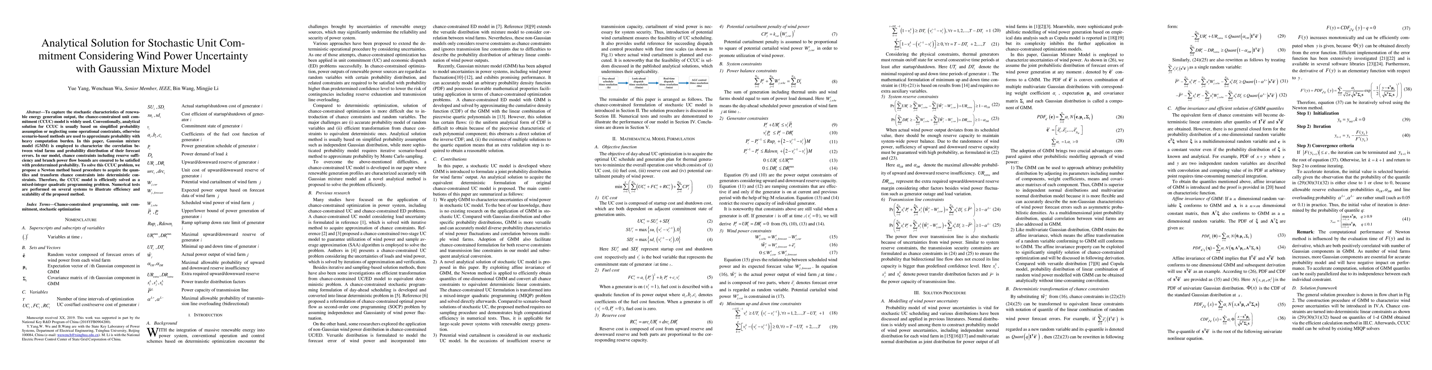 Researchers develop an analytical solution for unit commitment in power systems with wind power uncertainty, using a Gaussian Mixture Model to capture stochastic characteristics of renewable energy output. The proposed method efficiently solves the problem as a mixed-integer quadratic programming problem.