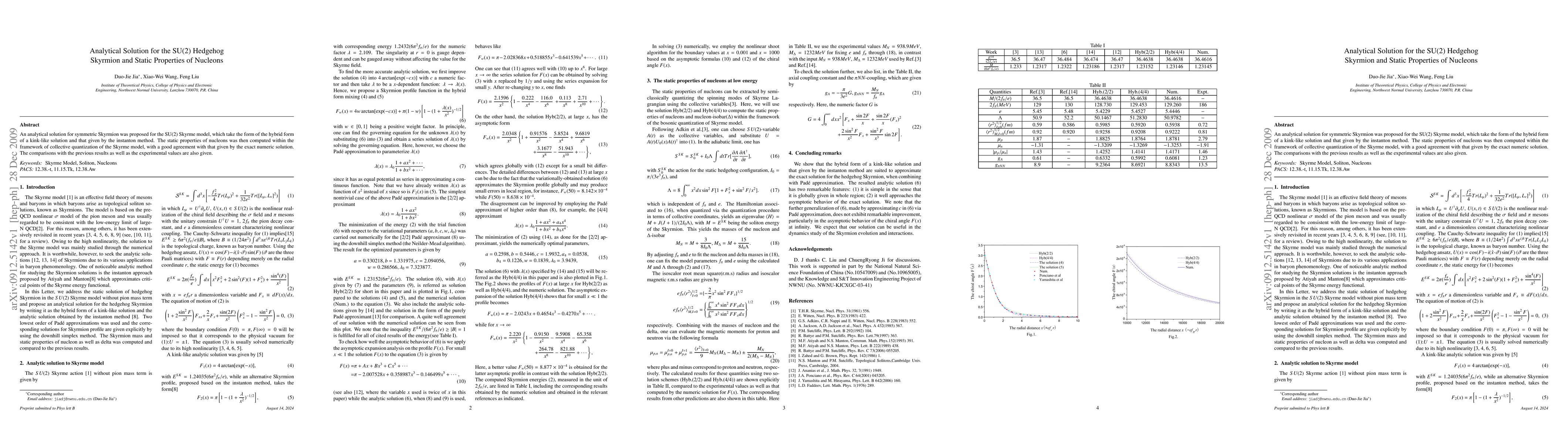 An analytical solution for symmetric Skyrmion was proposed for the SU(2) Skyrme model, which take the form of the hybrid form of a kink-like solution and that given by the instanton method. The static properties of nucleons was then computed within the framework of collective quantization of the Skyrme model, with a good agreement with that given by the exact numeric solution. The comparisons with the previous results as well as the experimental values are also given.