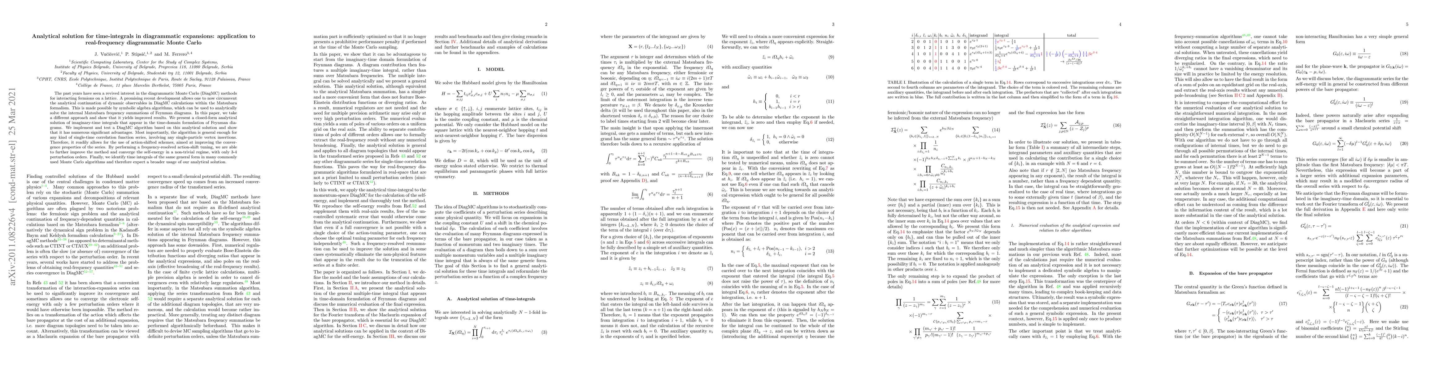 The past years have seen a revived interest in the diagrammatic Monte Carlo (DiagMC) methods for interacting fermions on a lattice. A promising recent development allows one to now circumvent the analytical continuation of dynamic observables in DiagMC calculations within the Matsubara formalism. This is made possible by symbolic algebra algorithms, which can be used to analytically solve the internal Matsubara frequency summations of Feynman diagrams. In this paper, we take a different approach and show that it yields improved results. We present a closed-form analytical solution of imaginary-time integrals that appear in the time-domain formulation of Feynman diagrams. We implement and test a DiagMC algorithm based on this analytical solution and show that it has numerous significant advantages. Most importantly, the algorithm is general enough for any kind of single-time correlation function series, involving any single-particle vertex insertions. Therefore, it readily allows for the use of action-shifted schemes, aimed at improving the convergence properties of the series. By performing a frequency-resolved action-shift tuning, we are able to further improve the method and converge the self-energy in a non-trivial regime, with only 3-4 perturbation orders. Finally, we identify time integrals of the same general form in many commonly used Monte Carlo algorithms and therefore expect a broader usage of our analytical solution.