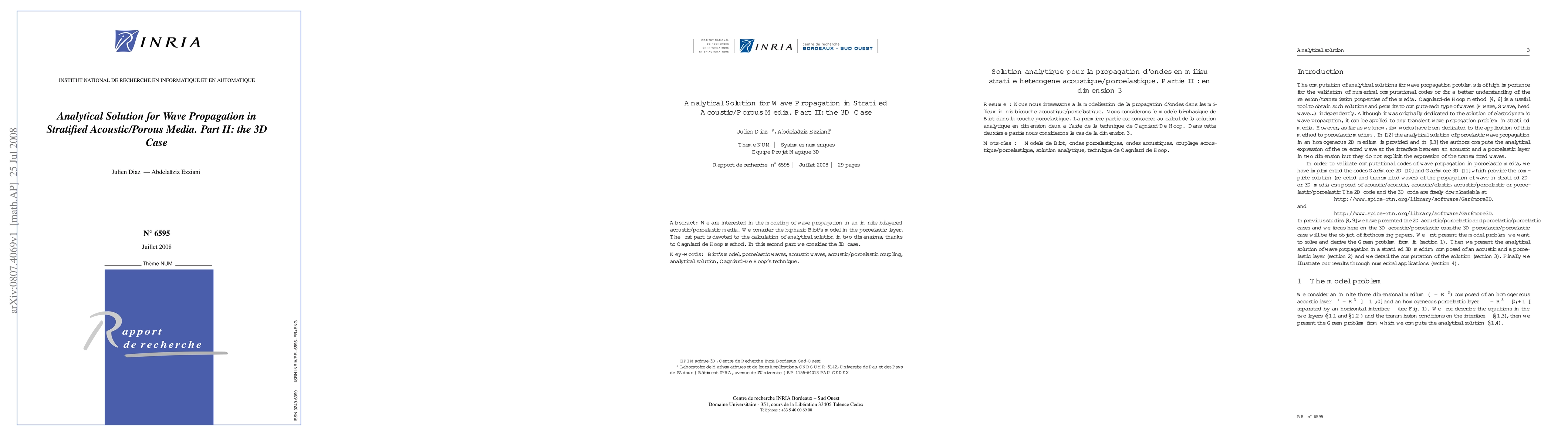We are interested in the modeling of wave propagation in an infinite bilayered acoustic/poroelastic media. We consider the biphasic Biot's model in the poroelastic layer. The first part is devoted to the calculation of analytical solution in two dimensions, thanks to Cagniard de Hoop method. In this second part we consider the 3D case.