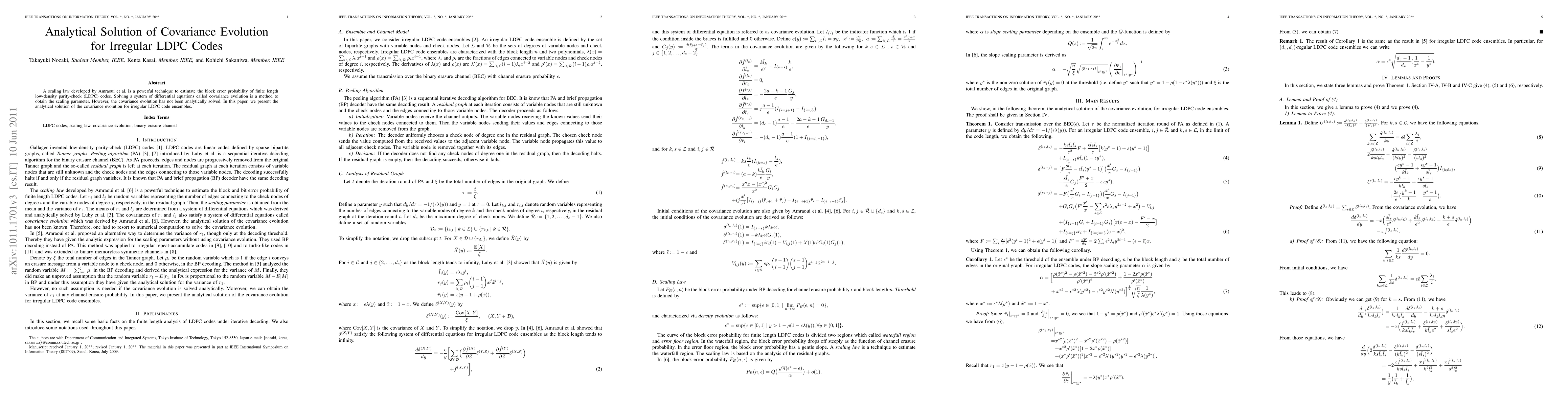 This paper presents an analytical solution for the covariance evolution in irregular LDPC codes, addressing the lack of such solutions and providing a method to determine the scaling parameter essential for estimating block error probabilities.