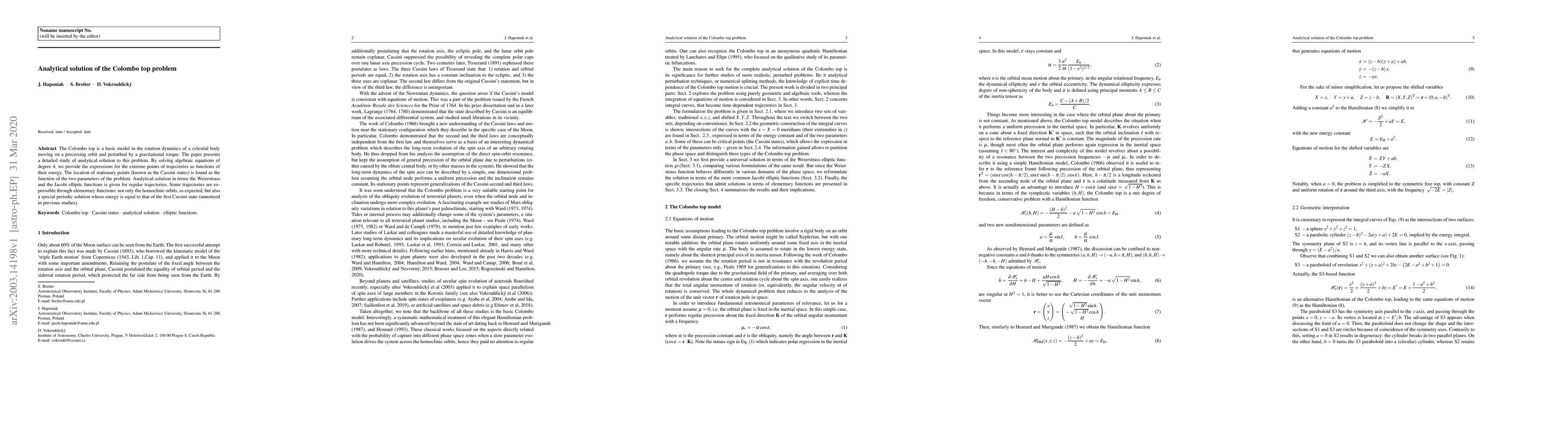 Researchers solved the Colombo top problem using algebraic equations of degree 4, finding expressions for extreme points of trajectories as functions of their energy and locations of stationary points in terms of two parameters.