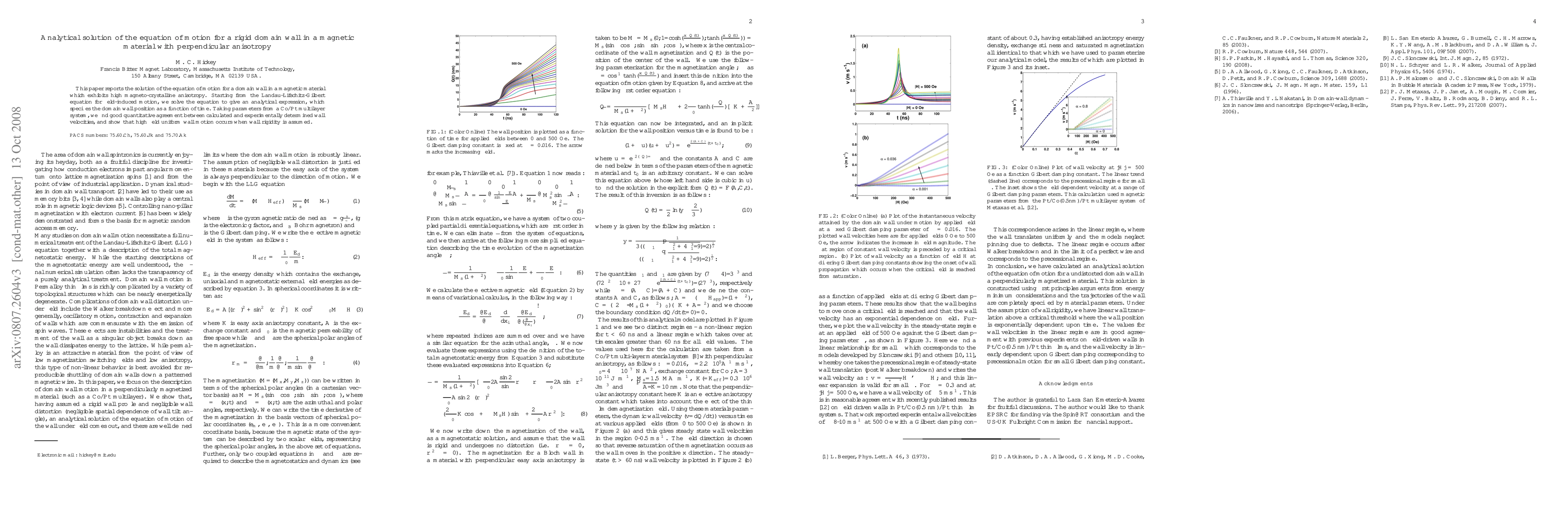 This paper reports the solution of the equation of motion for a domain wall in a magnetic material which exhibits high magneto-crystalline anisotropy. Starting from the Landau-Lifschitz-Gilbert equation for field-induced motion, we solve the equation to give an analytical expression, which specifies the domain wall position as a function of time. Taking parameters from a Co/Pt multilayer system, we find good quantitative agreement between calculated and experimentally determined wall velocities, and show that high field uniform wall motion occurs when wall rigidity is assumed.