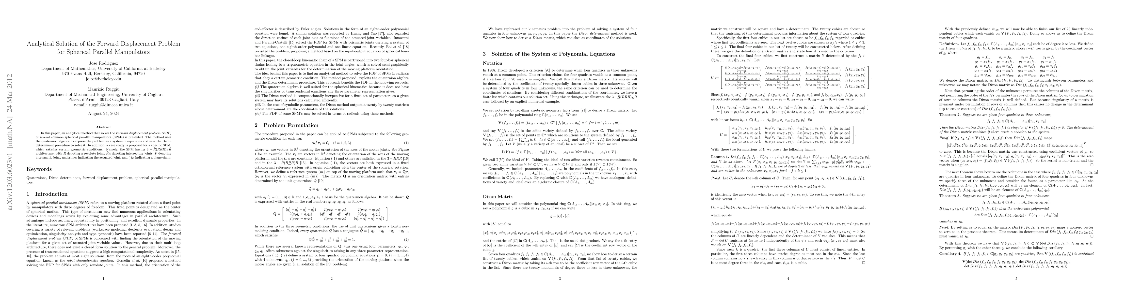 Researchers developed an analytical method using quaternion algebra to solve the forward displacement problem for spherical parallel manipulators, enabling a more efficient design and analysis of these machines.
