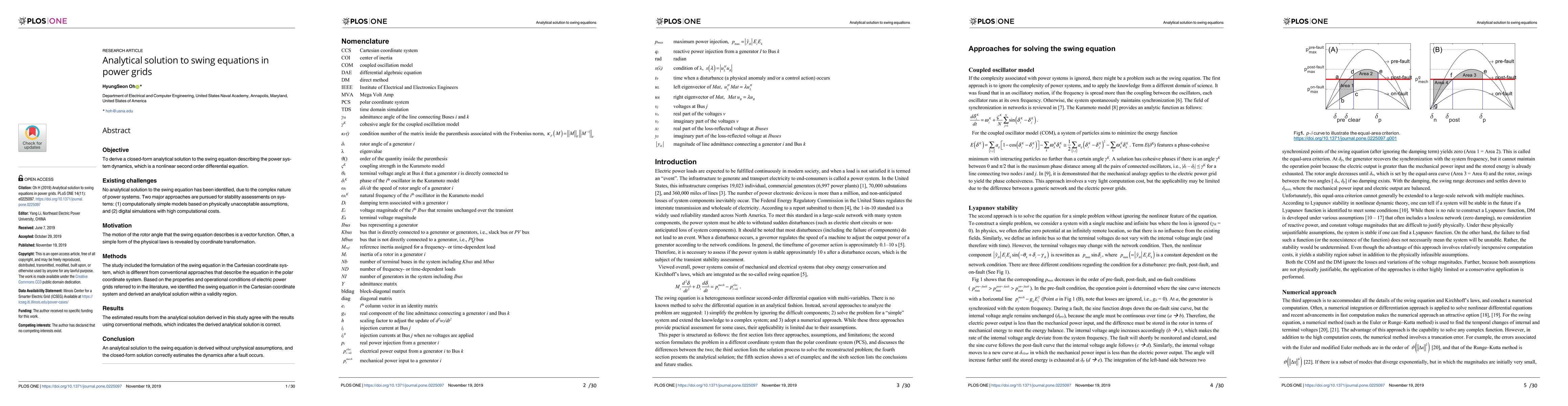Objective: To derive a closed-form analytical solution to the swing equation describing the power system dynamics, which is a nonlinear second order differential equation. Existing challenges: No analytical solution to the swing equation has been identified, due to the complex nature of power systems. Two major approaches are pursued for stability assessments on systems: (1) computationally simple models based on physically unacceptable assumptions, and (2) digital simulations with high computational costs. Motivation: The motion of the rotor angle that the swing equation describes is a vector function. Often, a simple form of the physical laws is revealed by coordinate transformation. Methods: The study included the formulation of the swing equation in the Cartesian coordinate system, which is different from conventional approaches that describe the equation in the polar coordinate system. Based on the properties and operational conditions of electric power grids referred to in the literature, we identified the swing equation in the Cartesian coordinate system and derived an analytical solution within a validity region. Results: The estimated results from the analytical solution derived in this study agree with the results using conventional methods, which indicates the derived analytical solution is correct. Conclusion: An analytical solution to the swing equation is derived without unphysical assumptions, and the closed-form solution correctly estimates the dynamics after a fault occurs.