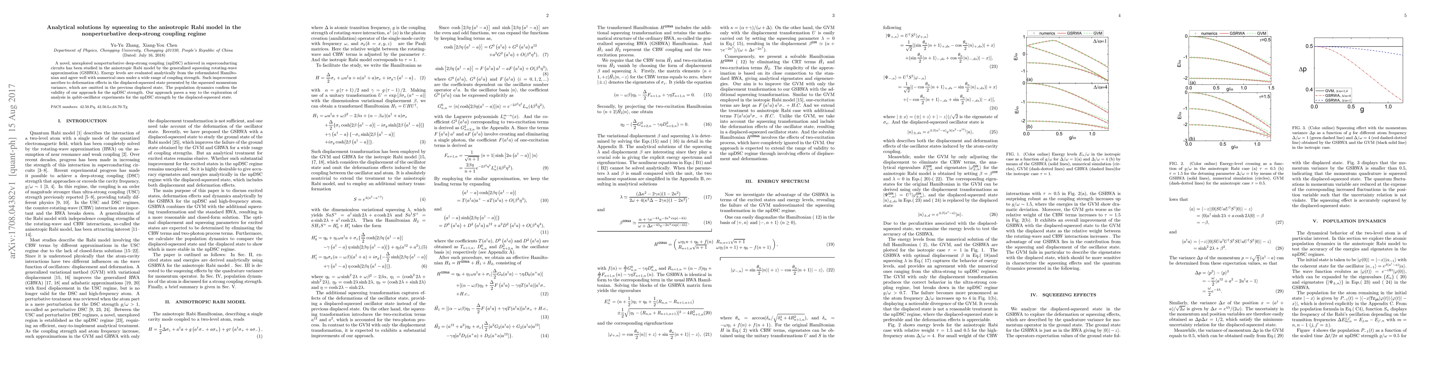 A novel, unexplored nonperturbative deep-strong coupling (npDSC) achieved in superconducting circuits has been studied in the anisotropic Rabi model by the generalized squeezing rotating-wave approximation (GSRWA). Energy levels are evaluated analytically from the reformulated Hamiltonian and agree well with numerical ones under a wide range of coupling strength. Such improvement ascribes to deformation effects in the displaced-squeezed state presented by the squeezed momentum variance, which are omitted in the previous displaced state. The population dynamics confirm the validity of our approach for the npDSC strength. Our approach paves a way to the exploration of analysis in qubit-oscillator experiments for the npDSC strength by the displaced-squeezed state.