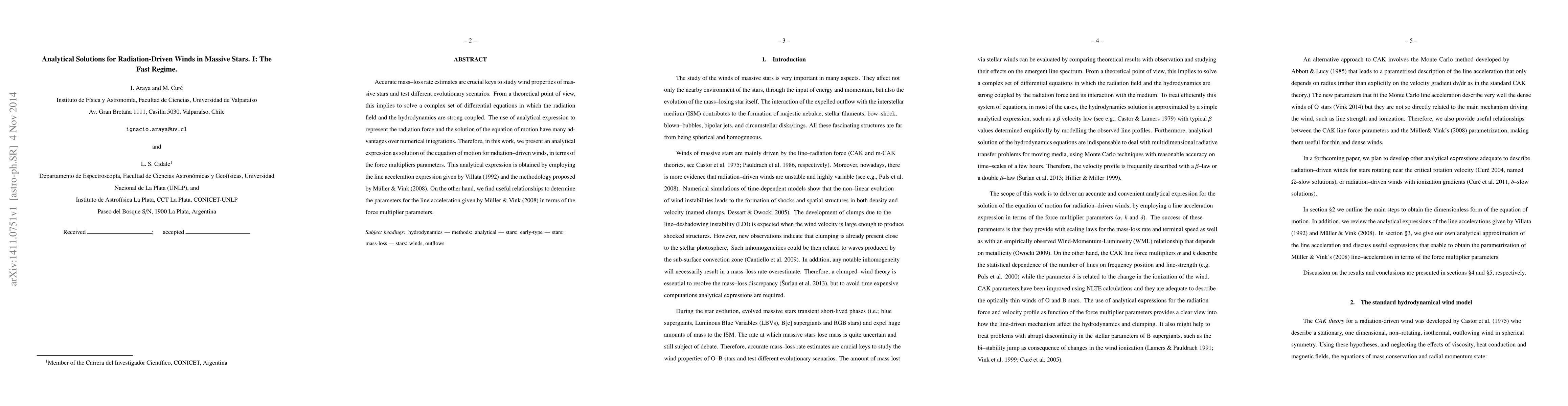 This paper presents an analytical solution for radiation-driven winds in massive stars, focusing on the fast regime. It employs analytical expressions to represent the radiation force and solve the equation of motion, offering advantages over numerical methods.