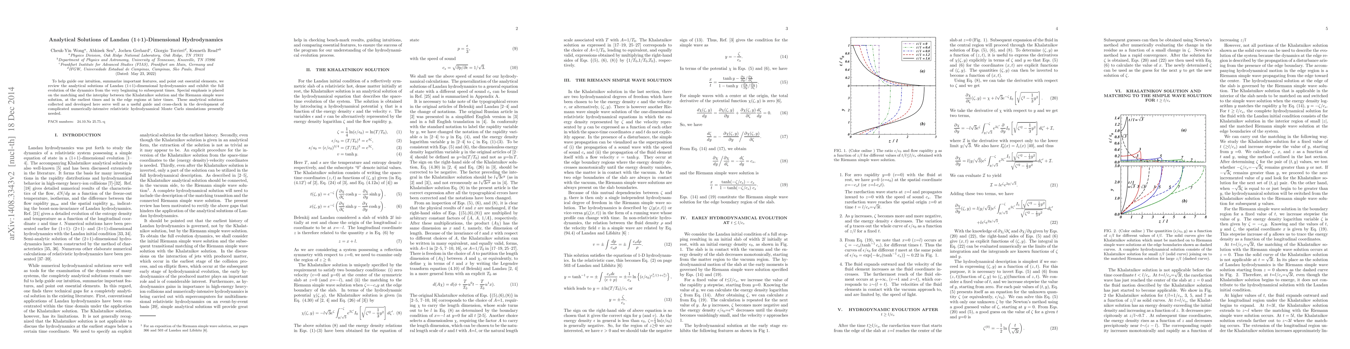 This paper reviews analytical solutions of Landau's (1+1)-dimensional hydrodynamics, detailing their evolution from start to later stages. It highlights the interaction between Khalatnikov and Riemann simple wave solutions, serving as a guide for complex relativistic hydrodynamical simulations.
