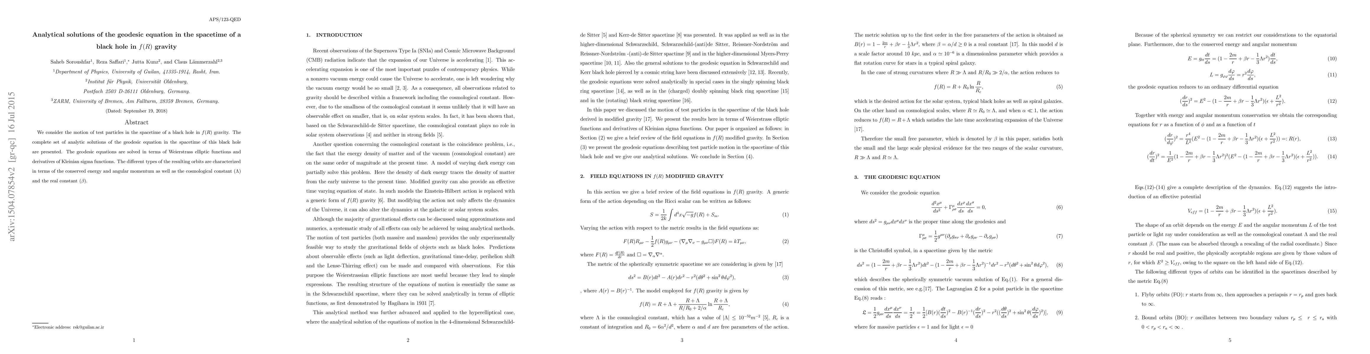This paper presents analytical solutions for the geodesic equation in the f(R) gravity framework around a black hole, utilizing Weierstrass elliptic functions and Kleinian sigma functions. The resulting orbits are classified based on conserved energy, angular momentum, cosmological constant $\Lambda$, and the real constant $\beta$.